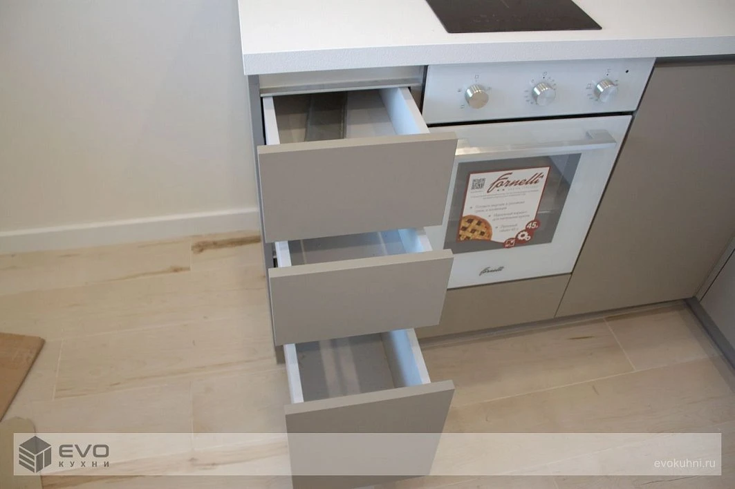 Кухни все изготавливаются по индивидуальному заказу. Мы подготовим дизайн-проект под любое помещение и конфигурацию. В зависимости от выбранных фасадов сможем изготовить нестандартные модули и размеры. Однако есть редкие исключения видов фасадов, по которым невозможны нестандарты, об этом вас предупредит дизайнер при выборе материалов для проекта.