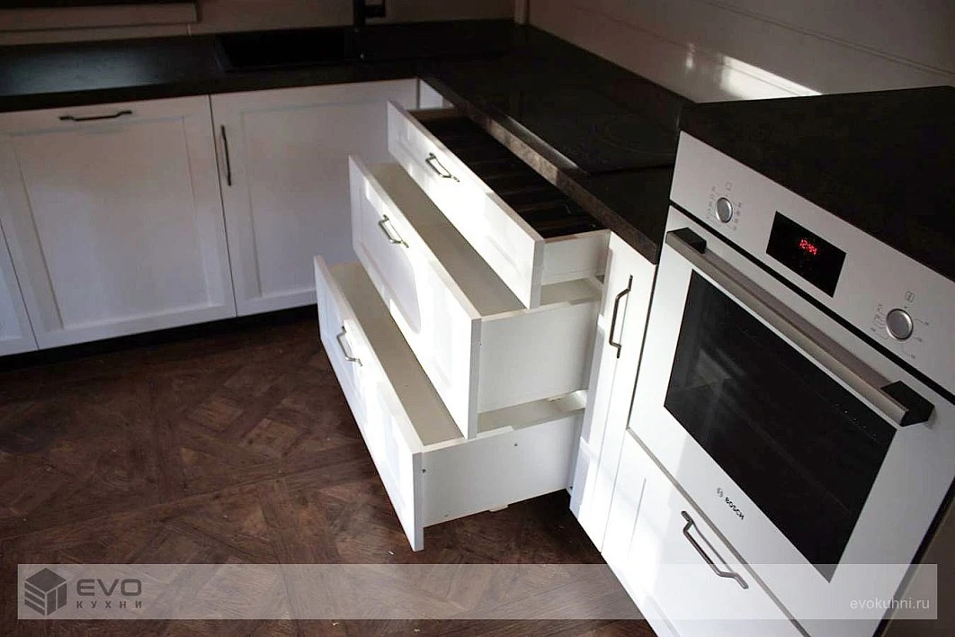 Кухни все изготавливаются по индивидуальному заказу. Мы подготовим дизайн-проект под любое помещение и конфигурацию. В зависимости от выбранных фасадов сможем изготовить нестандартные модули и размеры. Однако есть редкие исключения видов фасадов, по которым невозможны нестандарты, об этом вас предупредит дизайнер при выборе материалов для проекта.