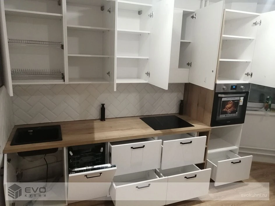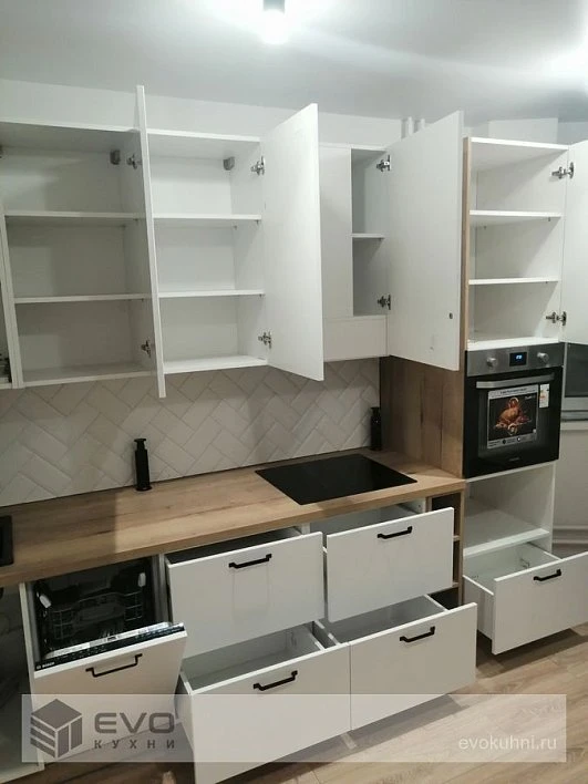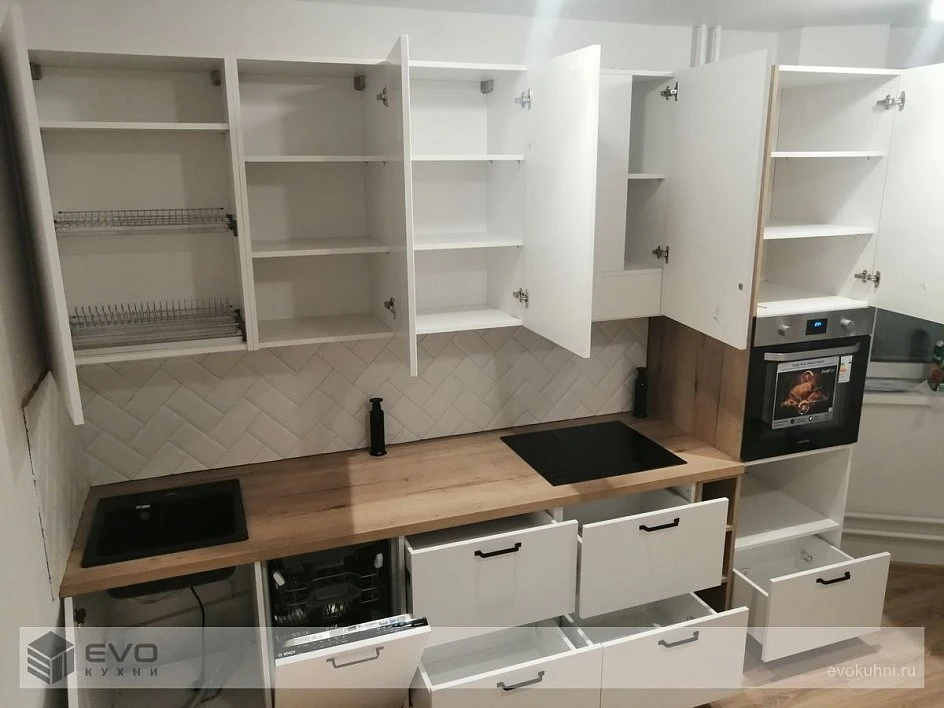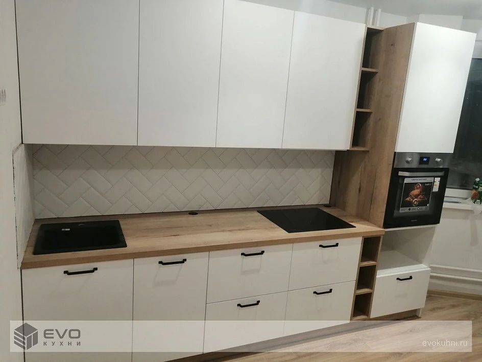 Кухни все изготавливаются по индивидуальному заказу. Мы подготовим дизайн-проект под любое помещение и конфигурацию. В зависимости от выбранных фасадов сможем изготовить нестандартные модули и размеры. Однако есть редкие исключения видов фасадов, по которым невозможны нестандарты, об этом вас предупредит дизайнер при выборе материалов для проекта.