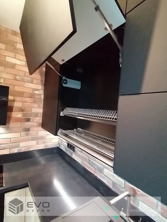 - Комплектация: Система"ЛеМанс" отделка ТИТАН правый без доводчиков для фасадов шириной 450мм, сушка двухуровневые с алюминиевой рамкой REJS на 900мм, шкаф стеллаж навесной открытый.