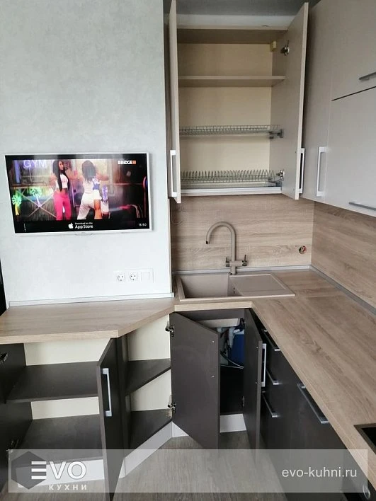 Кухни все изготавливаются по индивидуальному заказу. Мы подготовим дизайн-проект под любое помещение и конфигурацию. В зависимости от выбранных фасадов сможем изготовить нестандартные модули и размеры. Однако есть редкие исключения видов фасадов, по которым невозможны нестандарты, об этом вас предупредит дизайнер при выборе материалов для проекта.