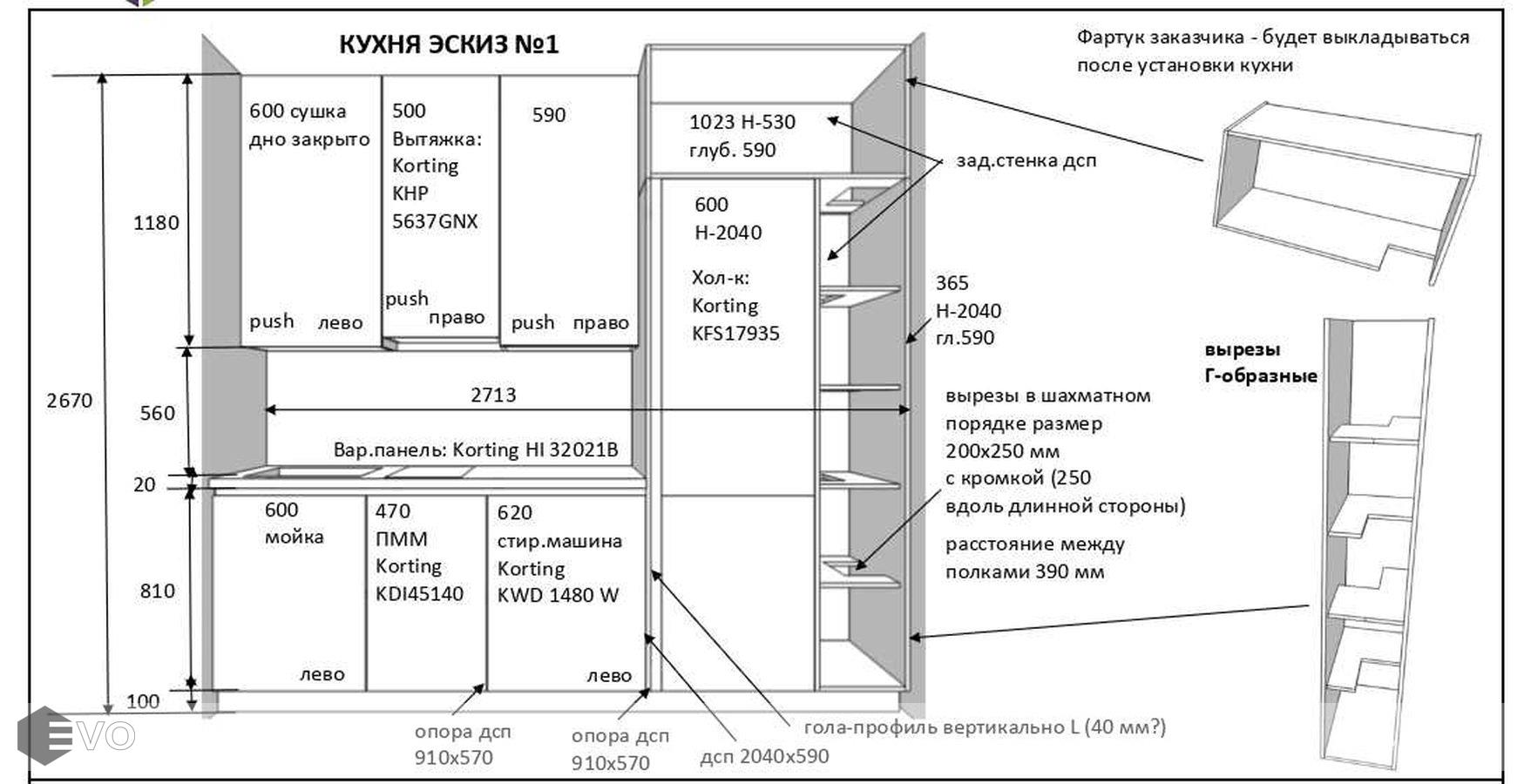 Дизайн-проект, максимально удовлетворяющий вашим пожеланиям, мы делаем бесплатно. Наши менеджеры-дизайнеры помогут вам определиться с моделью вашей будущей кухни, грамотно подберут встраиваемую технику, подберут цветовую гамму самой кухни исходя из стилистики интерьера и пожеланий клиента, составят технически грамотный проект под размеры помещения.