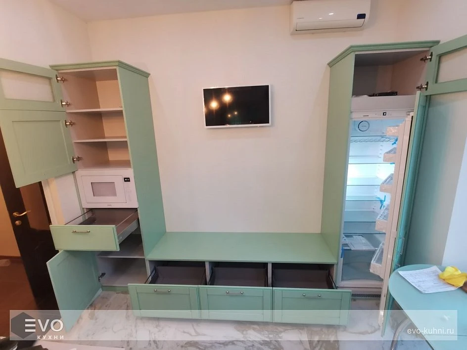 Кухни все изготавливаются по индивидуальному заказу. Мы подготовим дизайн-проект под любое помещение и конфигурацию. В зависимости от выбранных фасадов сможем изготовить нестандартные модули и размеры. Однако есть редкие исключения видов фасадов, по которым невозможны нестандарты, об этом вас предупредит дизайнер при выборе материалов для проекта.
