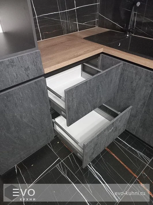 Кухни все изготавливаются по индивидуальному заказу. Мы подготовим дизайн-проект под любое помещение и конфигурацию. В зависимости от выбранных фасадов сможем изготовить нестандартные модули и размеры. Однако есть редкие исключения видов фасадов, по которым невозможны нестандарты, об этом вас предупредит дизайнер при выборе материалов для проекта.
