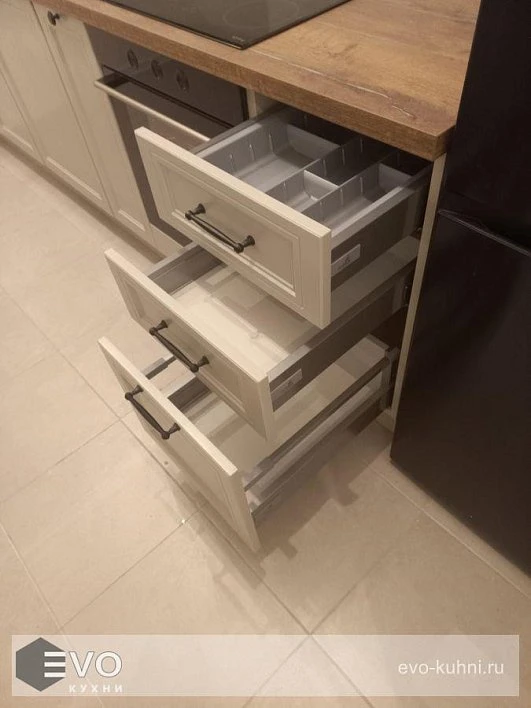 - Цоколь ПВХ бежевый•Фурнитура: Петли и выдвижные механизмы тандембокс «Hettich»