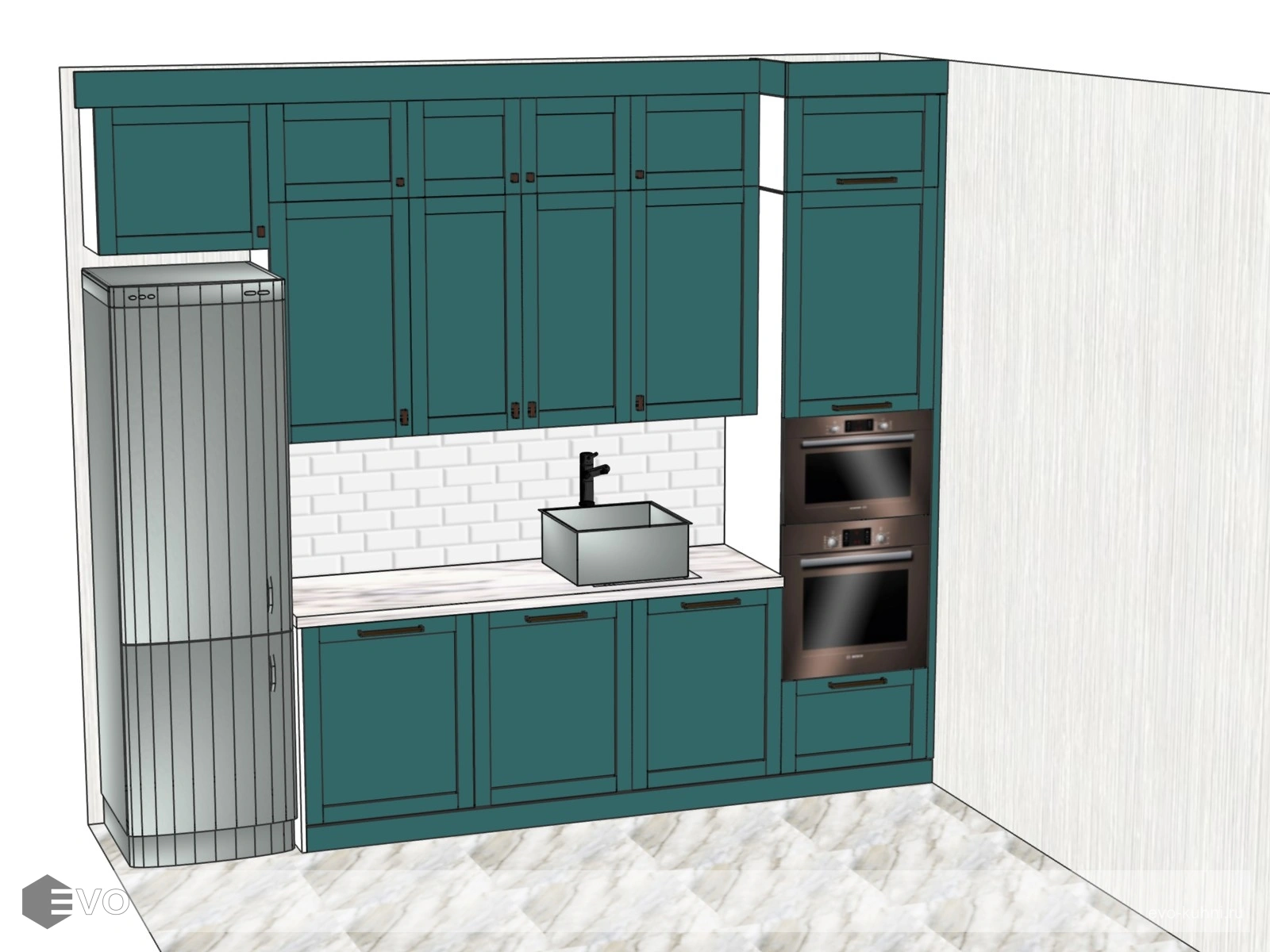 Бирюзовая кухня в стиле современная классика