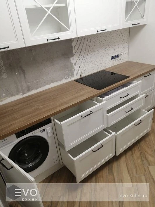 Кухни все изготавливаются по индивидуальному заказу. Мы подготовим дизайн-проект под любое помещение и конфигурацию. В зависимости от выбранных фасадов сможем изготовить нестандартные модули и размеры. Однако есть редкие исключения видов фасадов, по которым невозможны нестандарты, об этом вас предупредит дизайнер при выборе материалов для проекта.