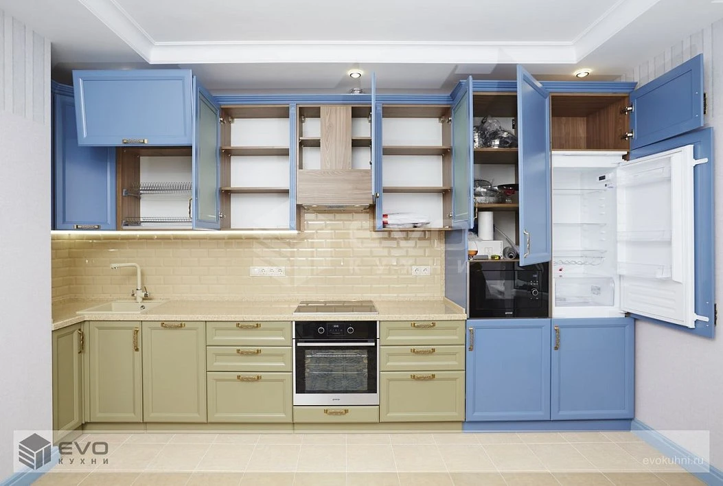 Кухни все изготавливаются по индивидуальному заказу. Мы подготовим дизайн-проект под любое помещение и конфигурацию. В зависимости от выбранных фасадов сможем изготовить нестандартные модули и размеры. Однако есть редкие исключения видов фасадов, по которым невозможны нестандарты, об этом вас предупредит дизайнер при выборе материалов для проекта.