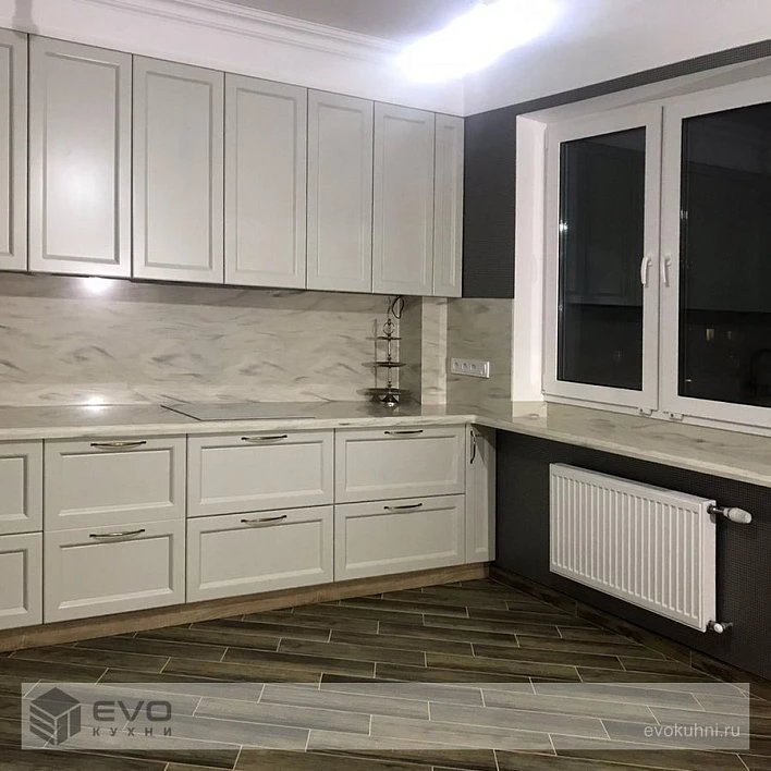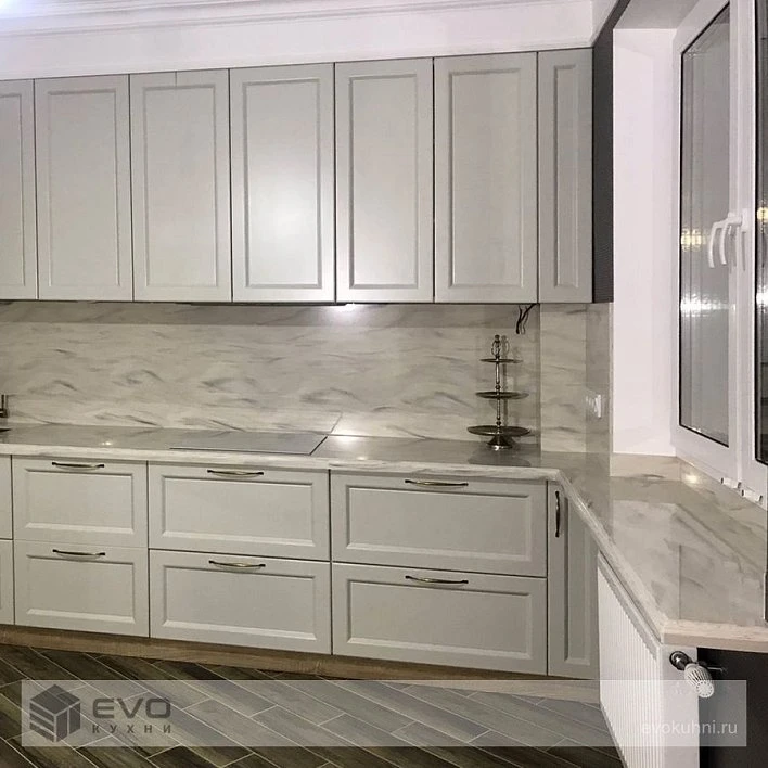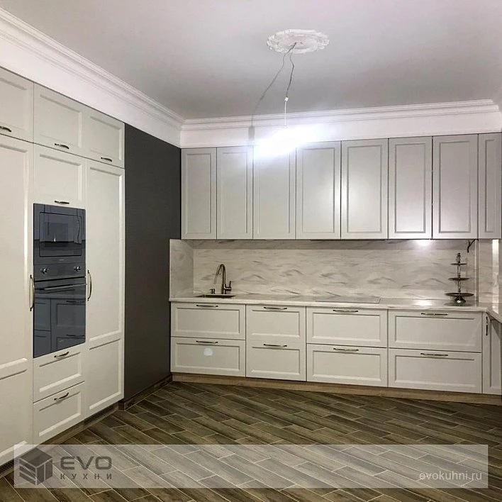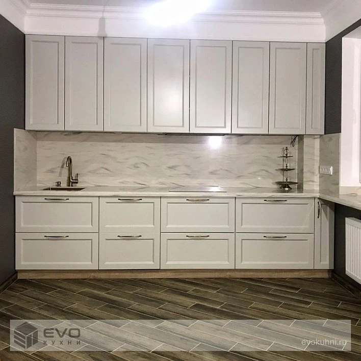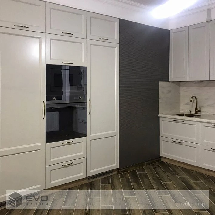 Прямая кухня неоклассика с порталом ПанФасад эмаль/МДФ