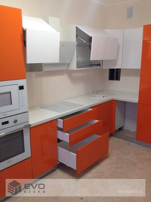 Угловая кухня модерн пластик/МДФ/ЛДСП интегрированные ручки РЯ180805