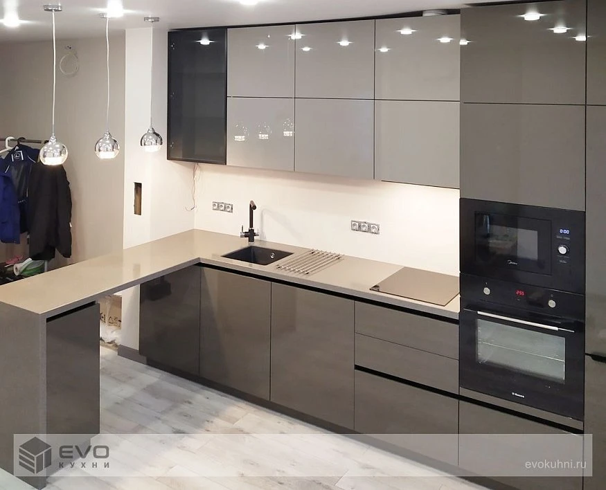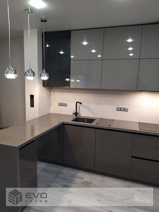 Прямая кухня модерн Alvic Базальт/Luxe Lava пластик/МДФ ИТ200101