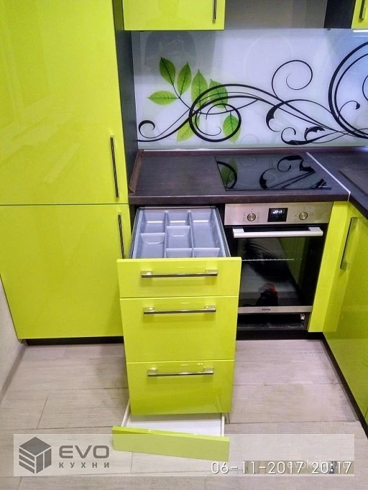 Кухни все изготавливаются по индивидуальному заказу. Мы подготовим дизайн-проект под любое помещение и конфигурацию. В зависимости от выбранных фасадов сможем изготовить нестандартные модули и размеры. Однако есть редкие исключения видов фасадов, по которым невозможны нестандарты, об этом вас предупредит дизайнер при выборе материалов для проекта.