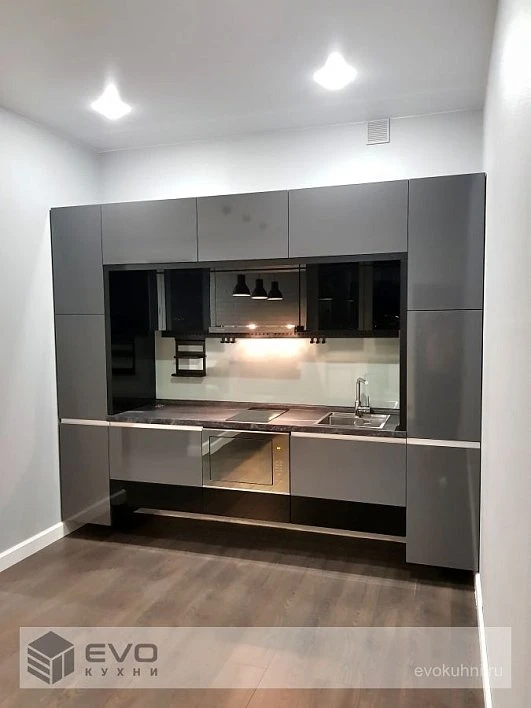 Прямая кухня хай-тек пластик/МДФ/ЛДСП без ручек 280 см