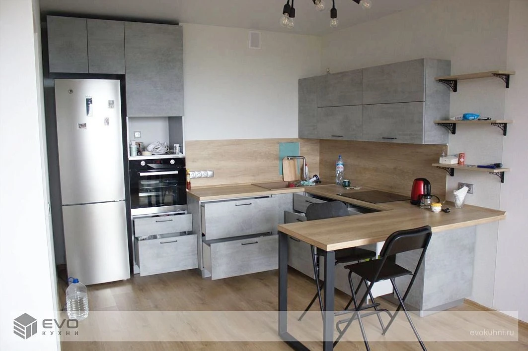 Угловая кухня лофт Cleaf Beton Dark пластик/МДФ/ЛДСП РБ190302