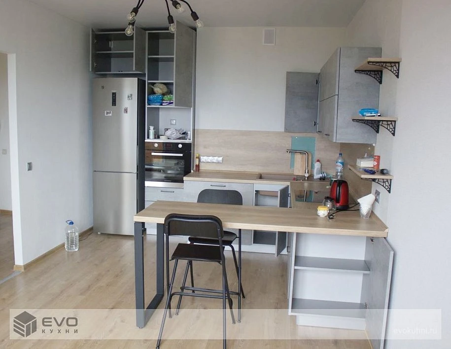 Кухни все изготавливаются по индивидуальному заказу. Мы подготовим дизайн-проект под любое помещение и конфигурацию. В зависимости от выбранных фасадов сможем изготовить нестандартные модули и размеры. Однако есть редкие исключения видов фасадов, по которым невозможны нестандарты, об этом вас предупредит дизайнер при выборе материалов для проекта.