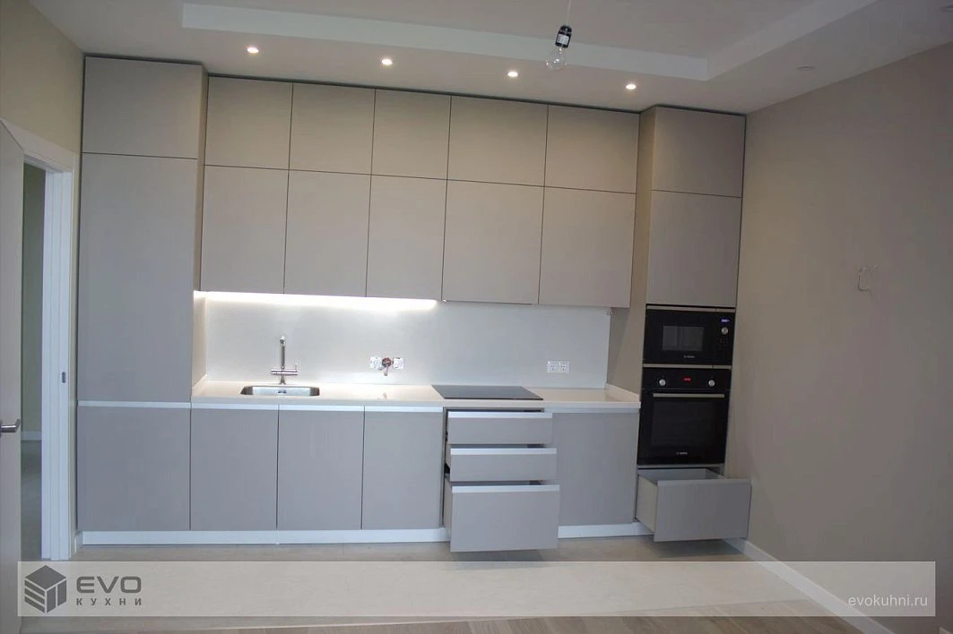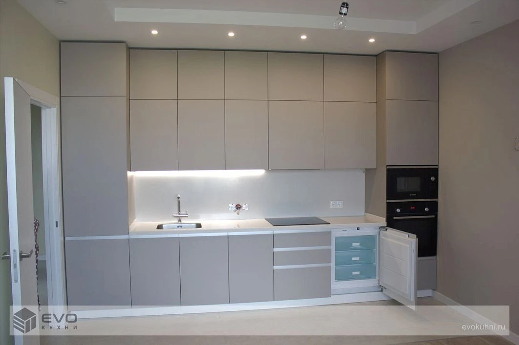 Кухни все изготавливаются по индивидуальному заказу. Мы подготовим дизайн-проект под любое помещение и конфигурацию. В зависимости от выбранных фасадов сможем изготовить нестандартные модули и размеры. Однако есть редкие исключения видов фасадов, по которым невозможны нестандарты, об этом вас предупредит дизайнер при выборе материалов для проекта.