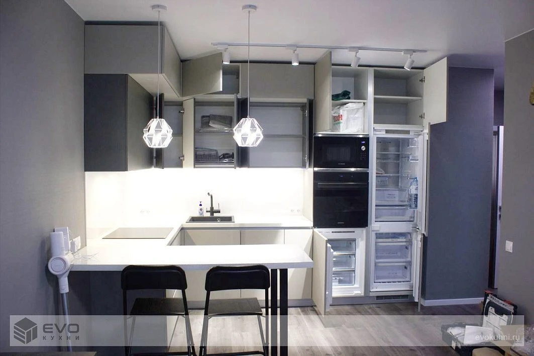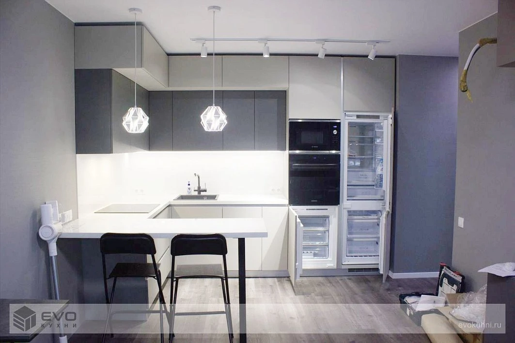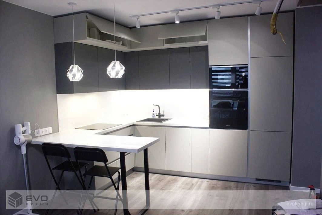 П-образная кухня модерн Оникс пленка/МДФ ЛК200201