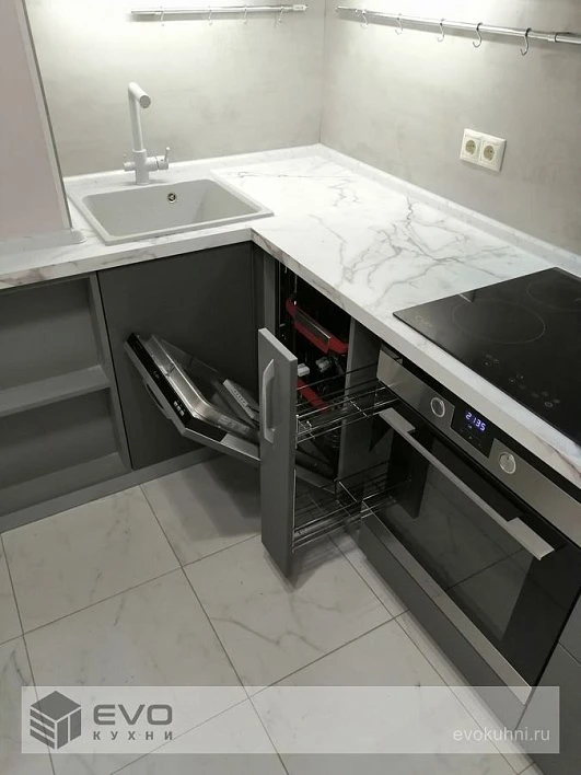 Кухни все изготавливаются по индивидуальному заказу. Мы подготовим дизайн-проект под любое помещение и конфигурацию. В зависимости от выбранных фасадов сможем изготовить нестандартные модули и размеры. Однако есть редкие исключения видов фасадов, по которым невозможны нестандарты, об этом вас предупредит дизайнер при выборе материалов для проекта.