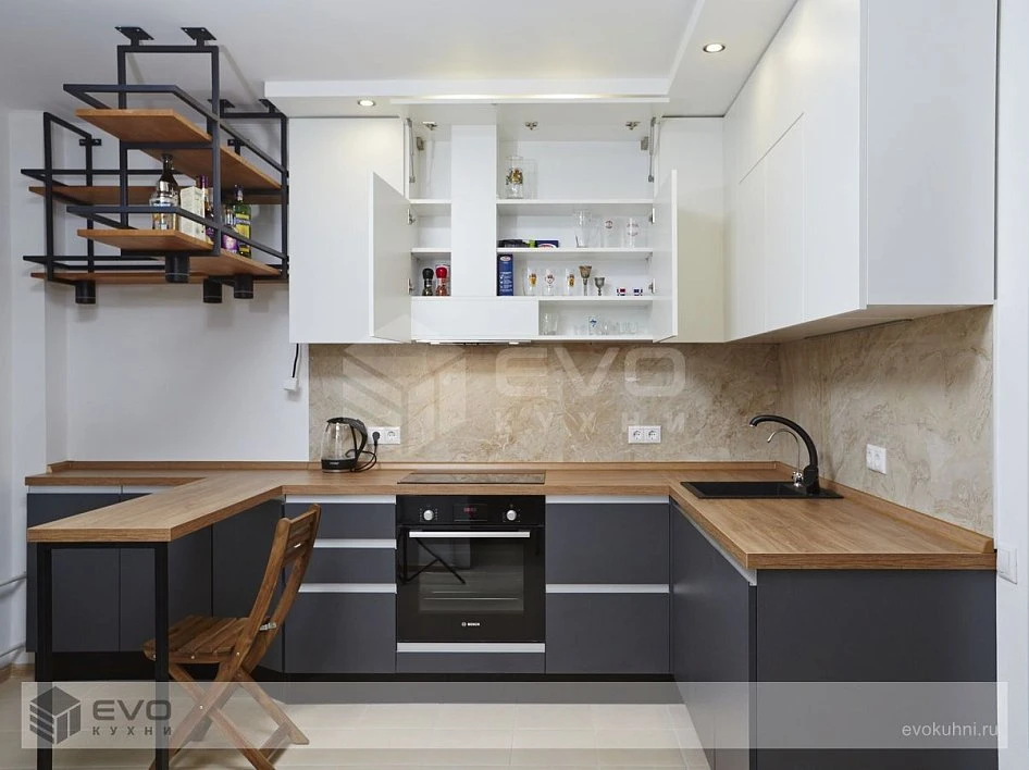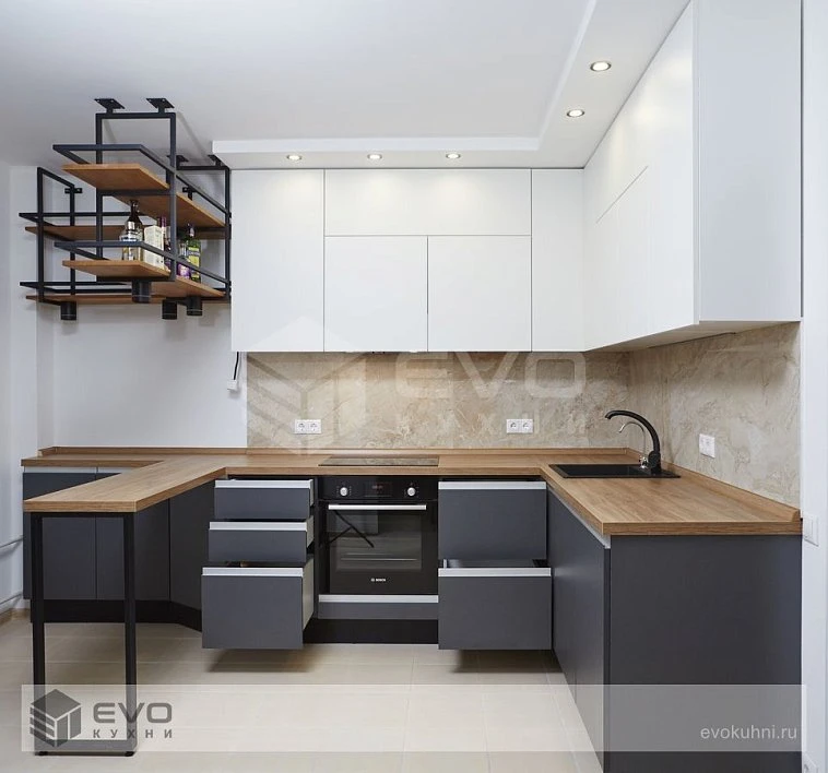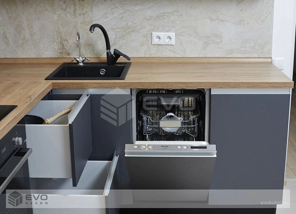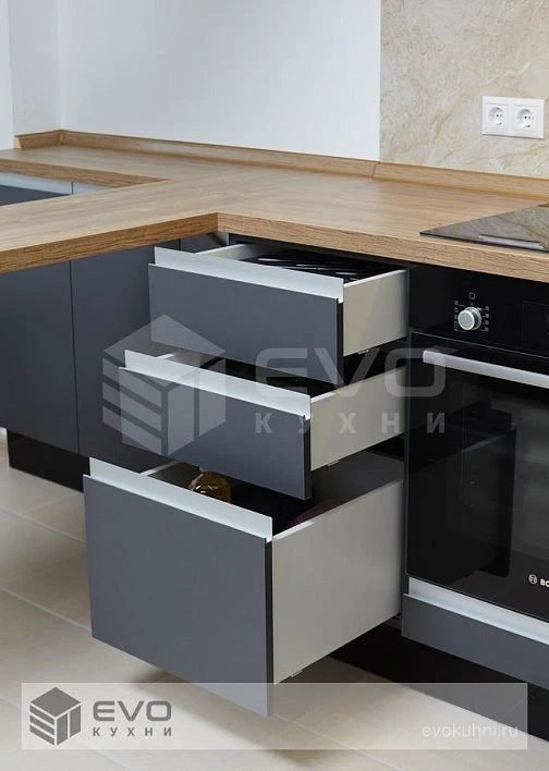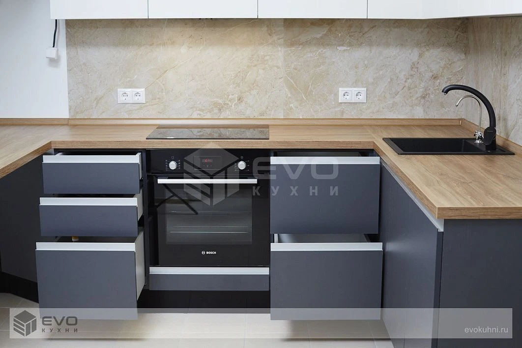 Кухни все изготавливаются по индивидуальному заказу. Мы подготовим дизайн-проект под любое помещение и конфигурацию. В зависимости от выбранных фасадов сможем изготовить нестандартные модули и размеры. Однако есть редкие исключения видов фасадов, по которым невозможны нестандарты, об этом вас предупредит дизайнер при выборе материалов для проекта.
