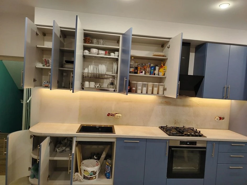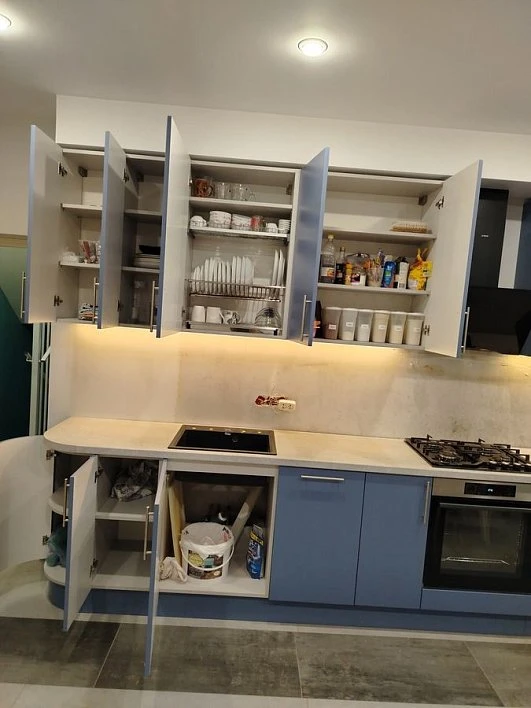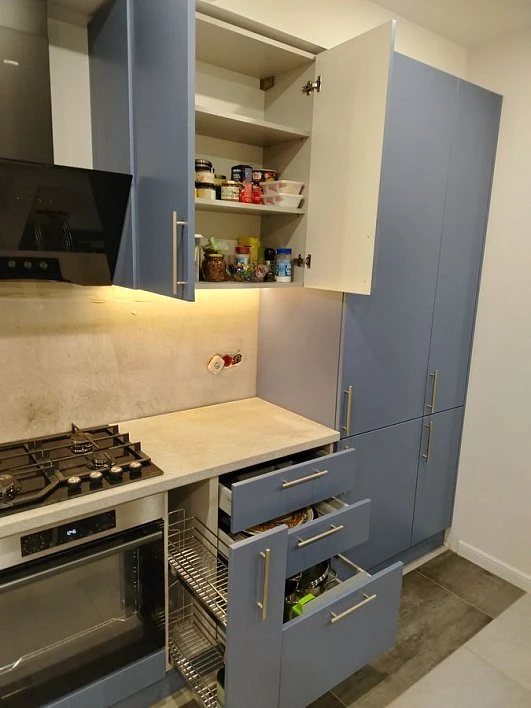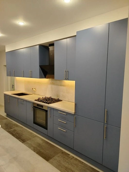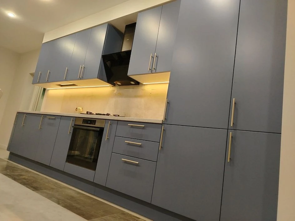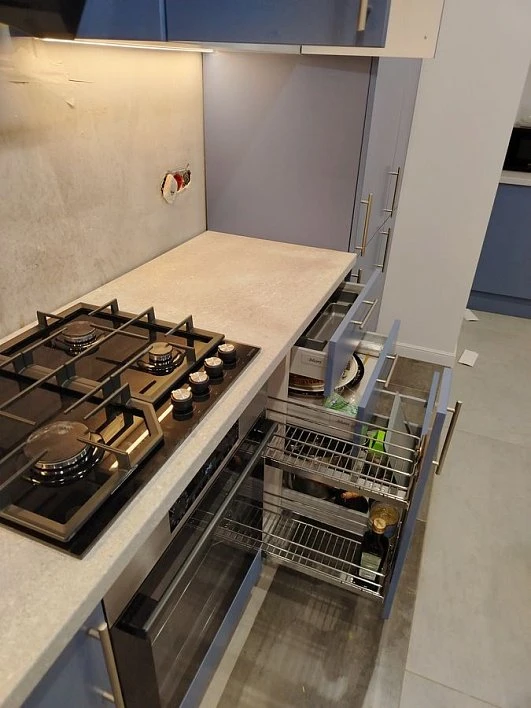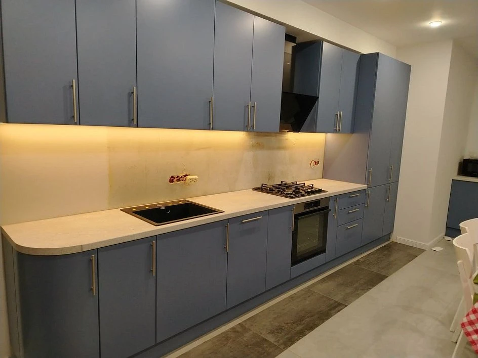 Кухни все изготавливаются по индивидуальному заказу. Мы подготовим дизайн-проект под любое помещение и конфигурацию. В зависимости от выбранных фасадов сможем изготовить нестандартные модули и размеры. Однако есть редкие исключения видов фасадов, по которым невозможны нестандарты, об этом вас предупредит дизайнер при выборе материалов для проекта.