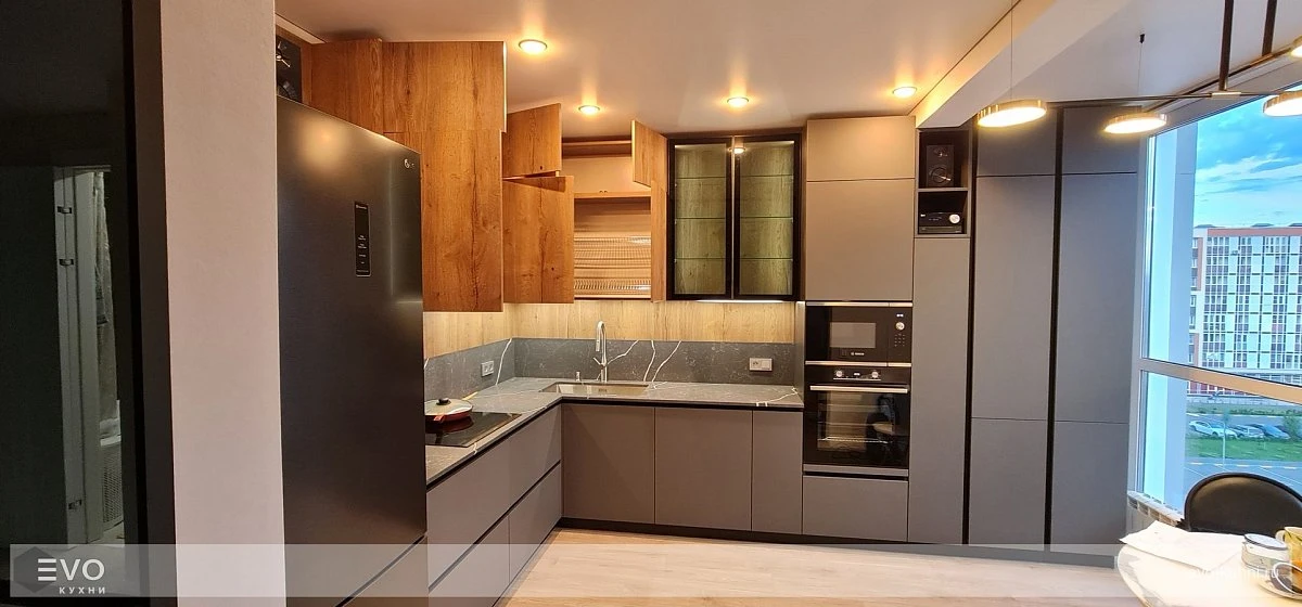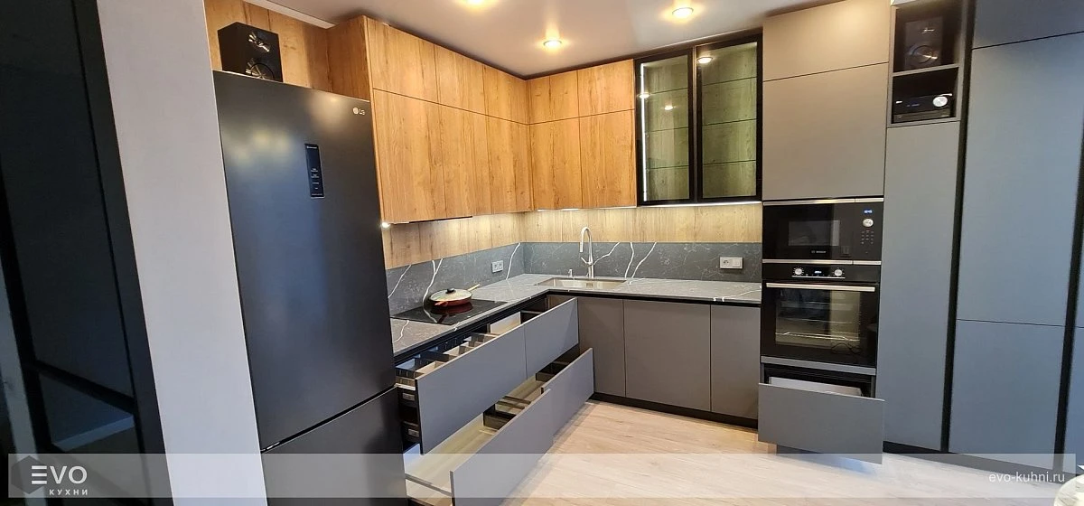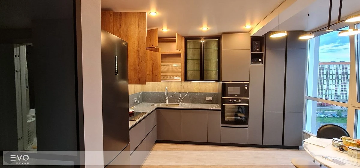 Кухни все изготавливаются по индивидуальному заказу. Мы подготовим дизайн-проект под любое помещение и конфигурацию. В зависимости от выбранных фасадов сможем изготовить нестандартные модули и размеры. Однако есть редкие исключения видов фасадов, по которым невозможны нестандарты, об этом вас предупредит дизайнер при выборе материалов для проекта.