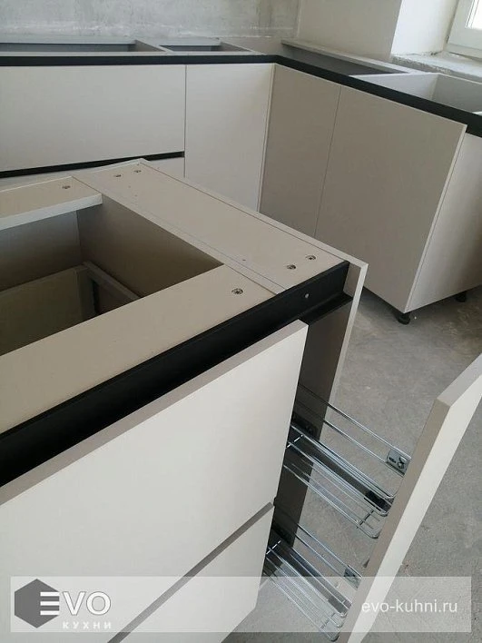 Кухни все изготавливаются по индивидуальному заказу. Мы подготовим дизайн-проект под любое помещение и конфигурацию. В зависимости от выбранных фасадов сможем изготовить нестандартные модули и размеры. Однако есть редкие исключения видов фасадов, по которым невозможны нестандарты, об этом вас предупредит дизайнер при выборе материалов для проекта.