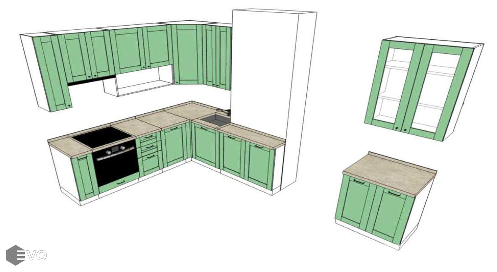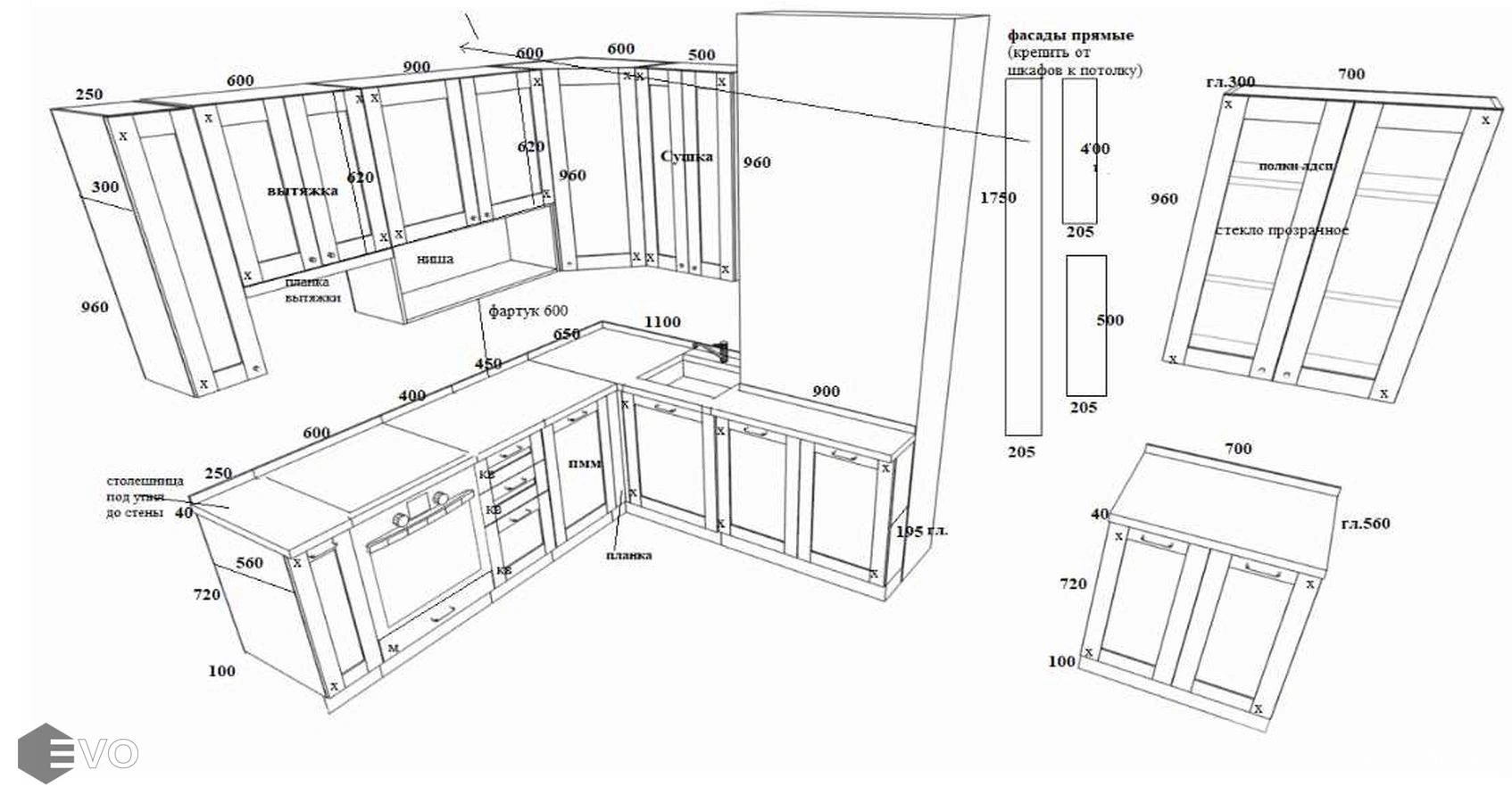 Кухни все изготавливаются по индивидуальному заказу. Мы подготовим дизайн-проект под любое помещение и конфигурацию. В зависимости от выбранных фасадов сможем изготовить нестандартные модули и размеры. Однако есть редкие исключения видов фасадов, по которым невозможны нестандарты, об этом вас предупредит дизайнер при выборе материалов для проекта.