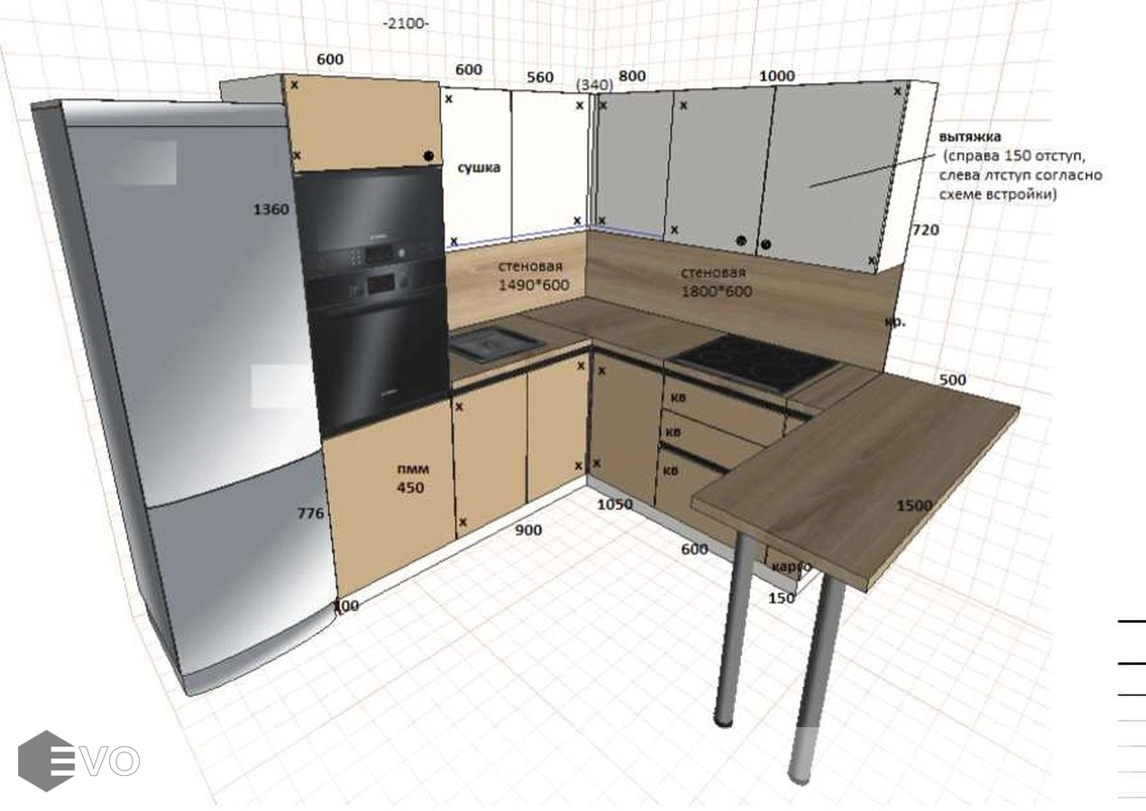 Дизайн-проект, максимально удовлетворяющий вашим пожеланиям, мы делаем бесплатно. Наши менеджеры-дизайнеры помогут вам определиться с моделью вашей будущей кухни, грамотно подберут встраиваемую технику, подберут цветовую гамму самой кухни исходя из стилистики интерьера и пожеланий клиента, составят технически грамотный проект под размеры помещения.