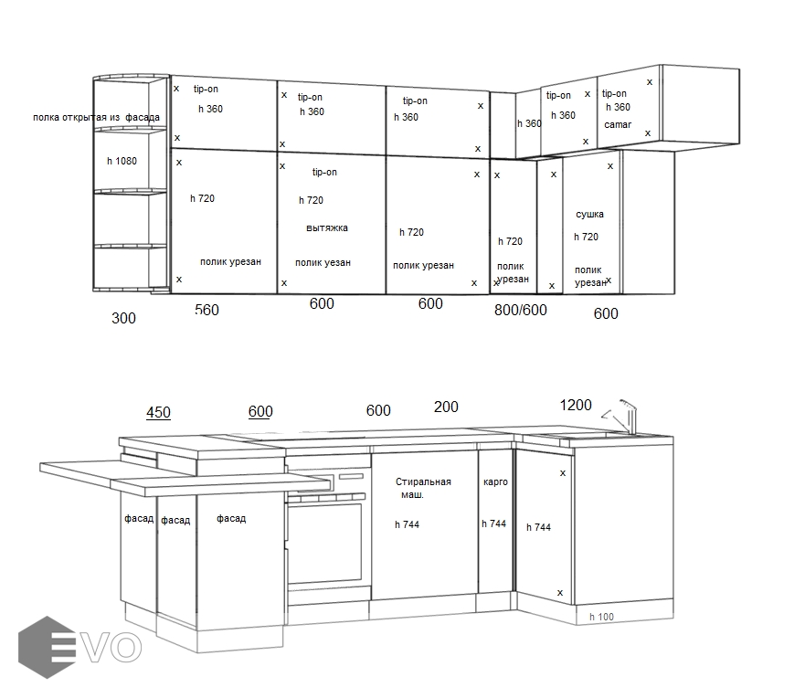 Кухни все изготавливаются по индивидуальному заказу. Мы подготовим дизайн-проект под любое помещение и конфигурацию. В зависимости от выбранных фасадов сможем изготовить нестандартные модули и размеры. Однако есть редкие исключения видов фасадов, по которым невозможны нестандарты, об этом вас предупредит дизайнер при выборе материалов для проекта.