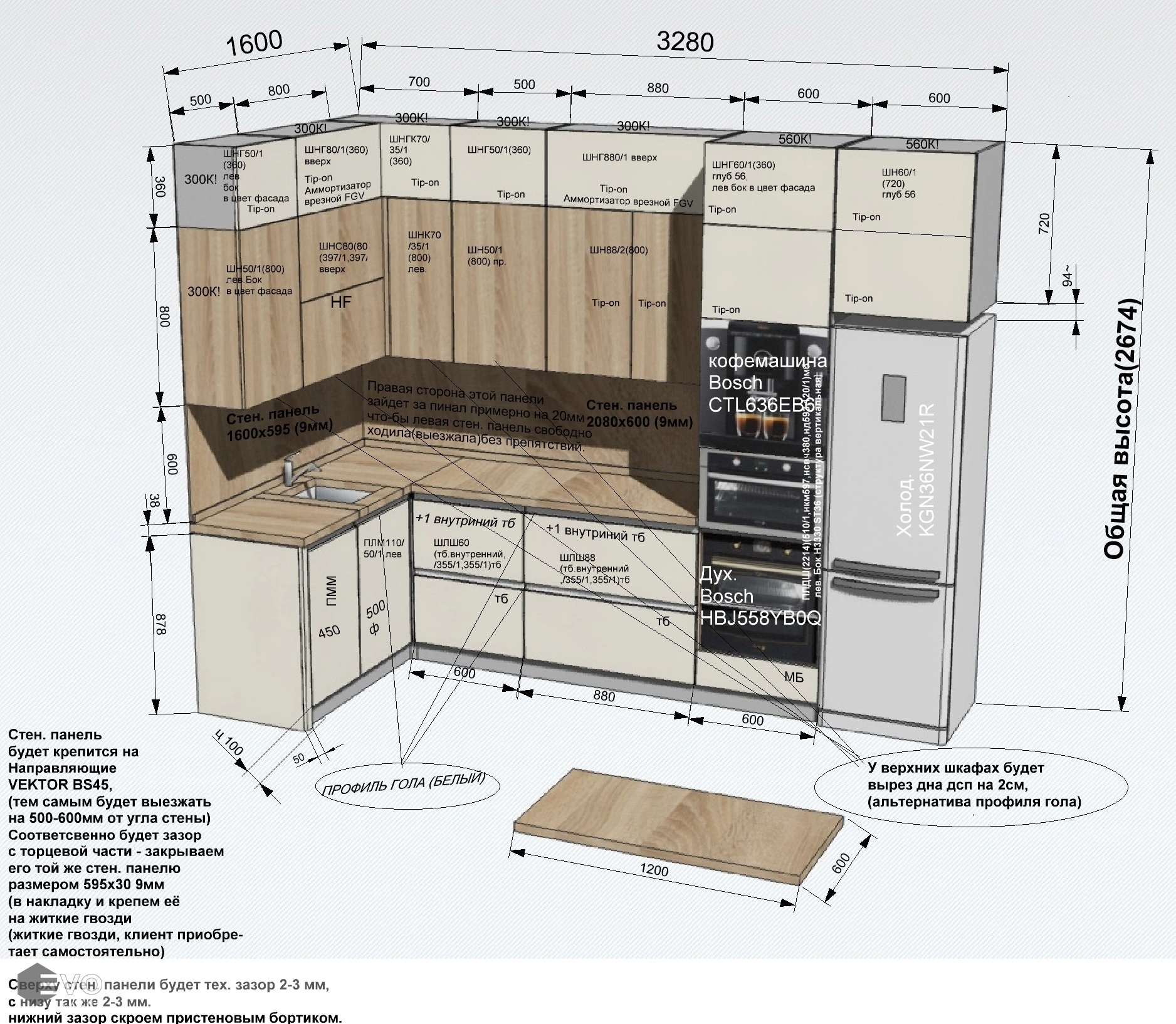 Дизайн-проект, максимально удовлетворяющий вашим пожеланиям, мы делаем бесплатно. Наши менеджеры-дизайнеры помогут вам определиться с моделью вашей будущей кухни, грамотно подберут встраиваемую технику, подберут цветовую гамму самой кухни исходя из стилистики интерьера и пожеланий клиента, составят технически грамотный проект под размеры помещения.