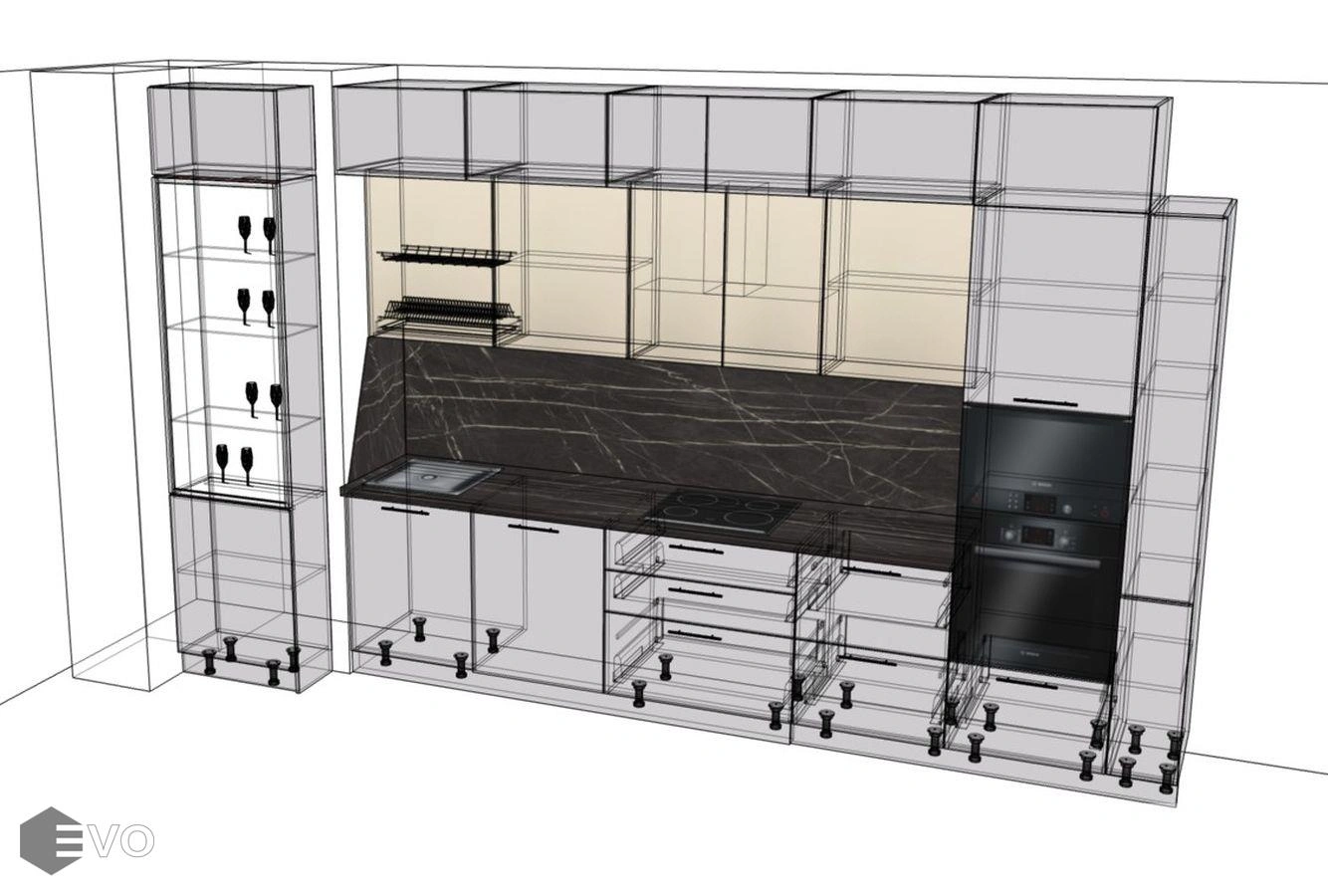 Дизайн-проект, максимально удовлетворяющий вашим пожеланиям, мы делаем бесплатно. Наши менеджеры-дизайнеры помогут вам определиться с моделью вашей будущей кухни, грамотно подберут встраиваемую технику, подберут цветовую гамму самой кухни исходя из стилистики интерьера и пожеланий клиента, составят технически грамотный проект под размеры помещения.