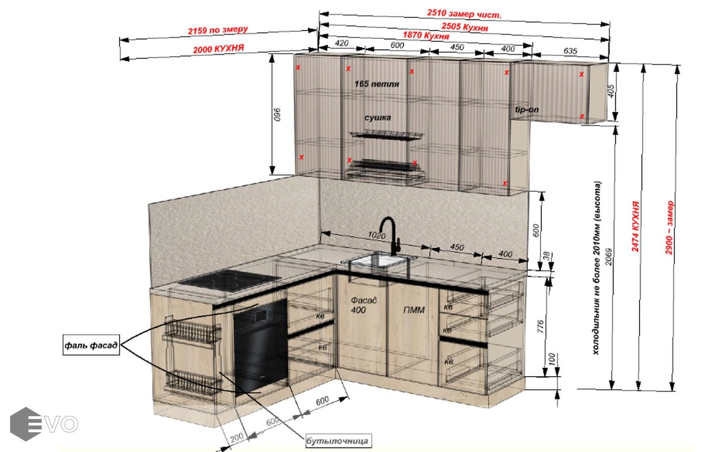 Дизайн-проект, максимально удовлетворяющий вашим пожеланиям, мы делаем бесплатно. Наши менеджеры-дизайнеры помогут вам определиться с моделью вашей будущей кухни, грамотно подберут встраиваемую технику, подберут цветовую гамму самой кухни исходя из стилистики интерьера и пожеланий клиента, составят технически грамотный проект под размеры помещения.