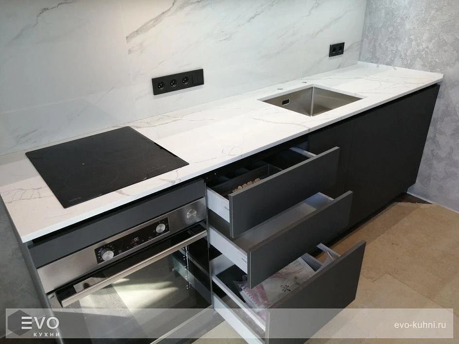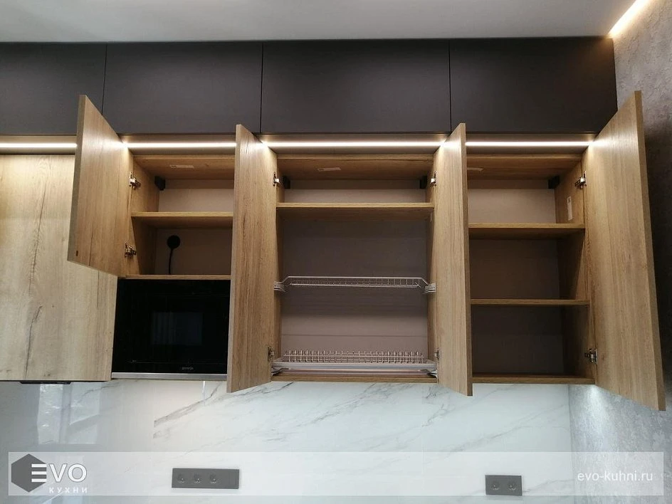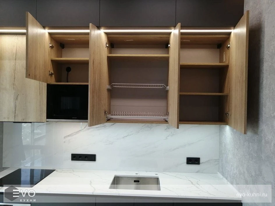 Кухни все изготавливаются по индивидуальному заказу. Мы подготовим дизайн-проект под любое помещение и конфигурацию. В зависимости от выбранных фасадов сможем изготовить нестандартные модули и размеры. Однако есть редкие исключения видов фасадов, по которым невозможны нестандарты, об этом вас предупредит дизайнер при выборе материалов для проекта.