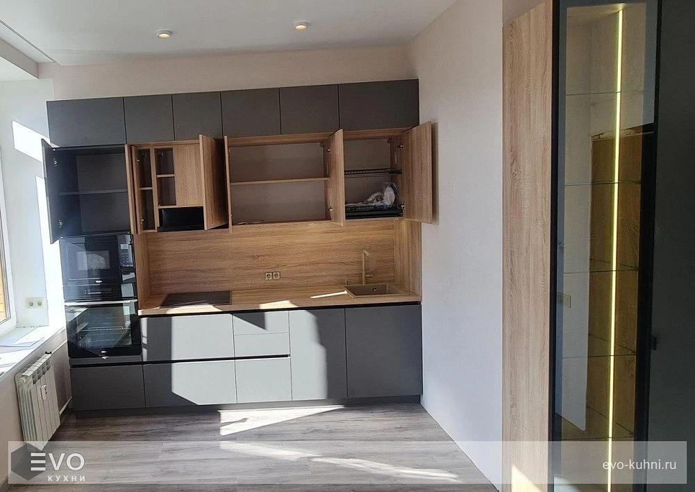Кухни все изготавливаются по индивидуальному заказу. Мы подготовим дизайн-проект под любое помещение и конфигурацию. В зависимости от выбранных фасадов сможем изготовить нестандартные модули и размеры. Однако есть редкие исключения видов фасадов, по которым невозможны нестандарты, об этом вас предупредит дизайнер при выборе материалов для проекта.