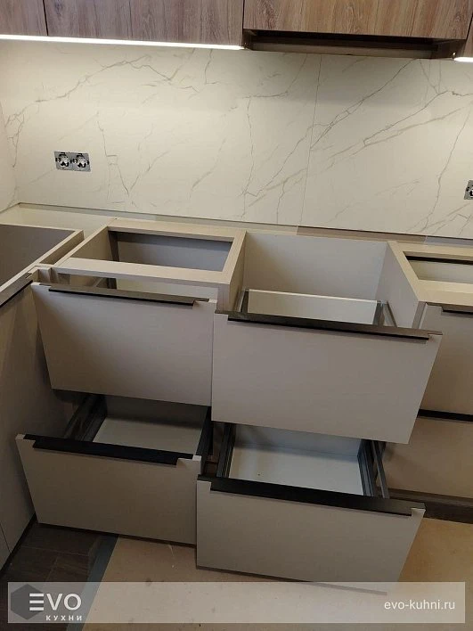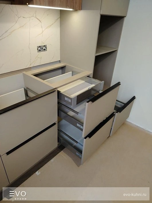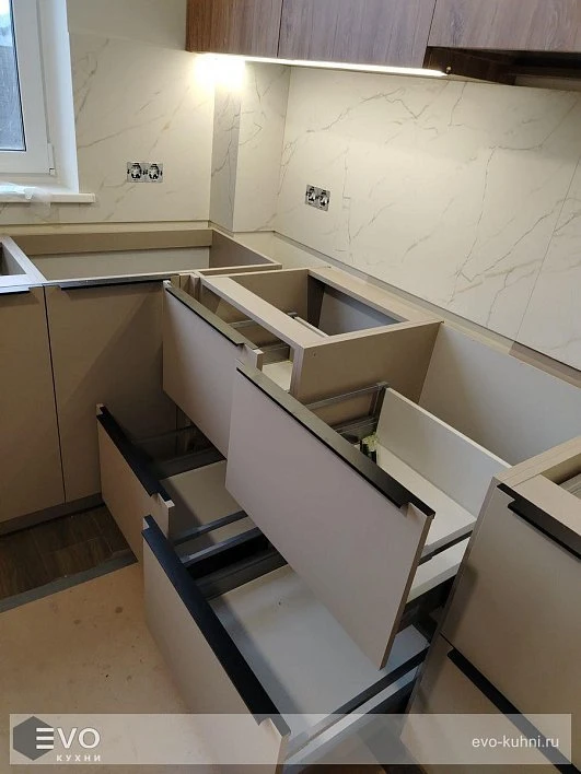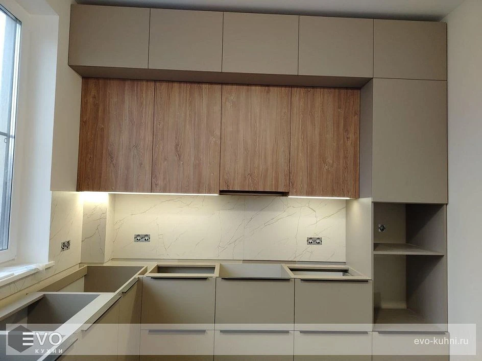 Кухни все изготавливаются по индивидуальному заказу. Мы подготовим дизайн-проект под любое помещение и конфигурацию. В зависимости от выбранных фасадов сможем изготовить нестандартные модули и размеры. Однако есть редкие исключения видов фасадов, по которым невозможны нестандарты, об этом вас предупредит дизайнер при выборе материалов для проекта.