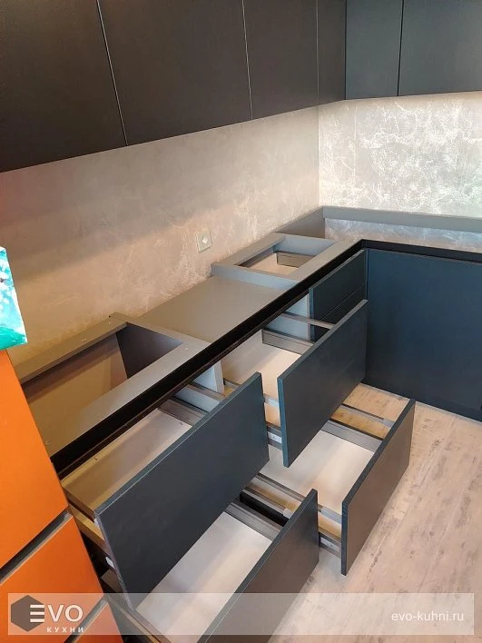 Кухни все изготавливаются по индивидуальному заказу. Мы подготовим дизайн-проект под любое помещение и конфигурацию. В зависимости от выбранных фасадов сможем изготовить нестандартные модули и размеры. Однако есть редкие исключения видов фасадов, по которым невозможны нестандарты, об этом вас предупредит дизайнер при выборе материалов для проекта.