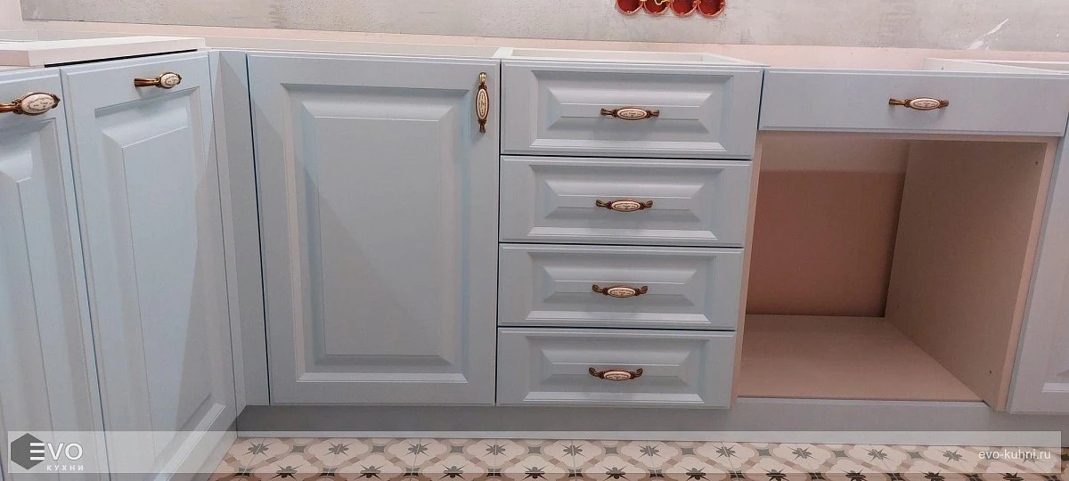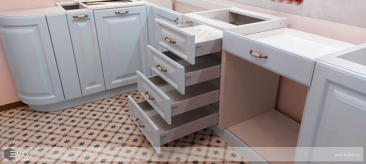 Кухни все изготавливаются по индивидуальному заказу. Мы подготовим дизайн-проект под любое помещение и конфигурацию. В зависимости от выбранных фасадов сможем изготовить нестандартные модули и размеры. Однако есть редкие исключения видов фасадов, по которым невозможны нестандарты, об этом вас предупредит дизайнер при выборе материалов для проекта.