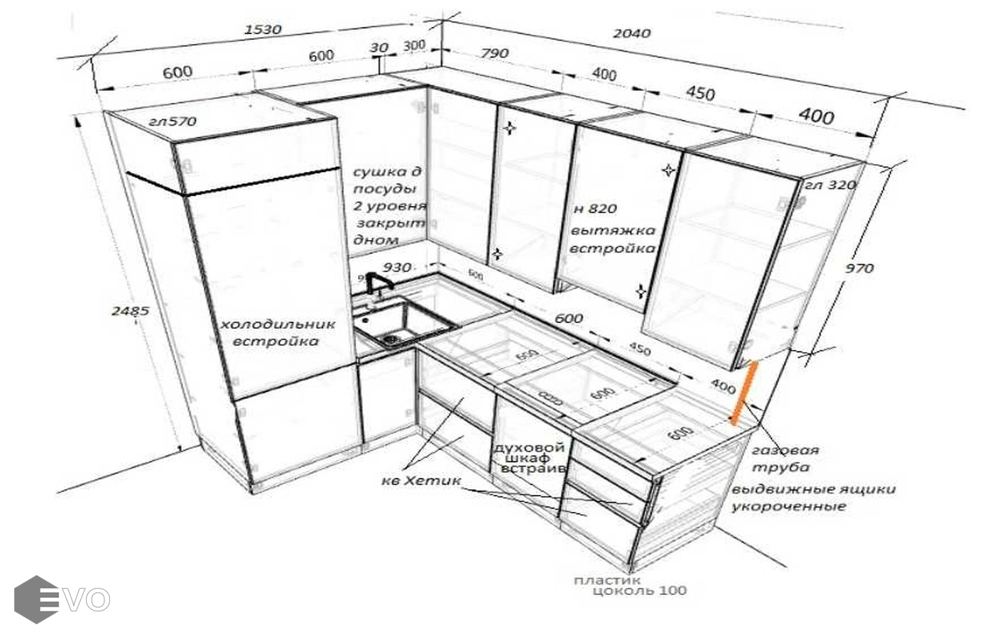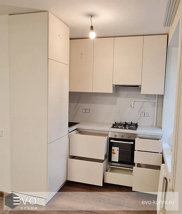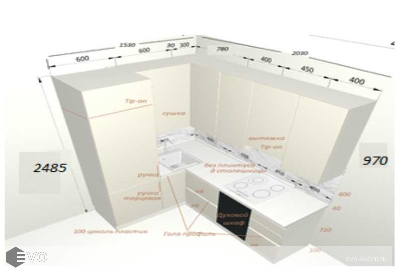 Кухни все изготавливаются по индивидуальному заказу. Мы подготовим дизайн-проект под любое помещение и конфигурацию. В зависимости от выбранных фасадов сможем изготовить нестандартные модули и размеры. Однако есть редкие исключения видов фасадов, по которым невозможны нестандарты, об этом вас предупредит дизайнер при выборе материалов для проекта.