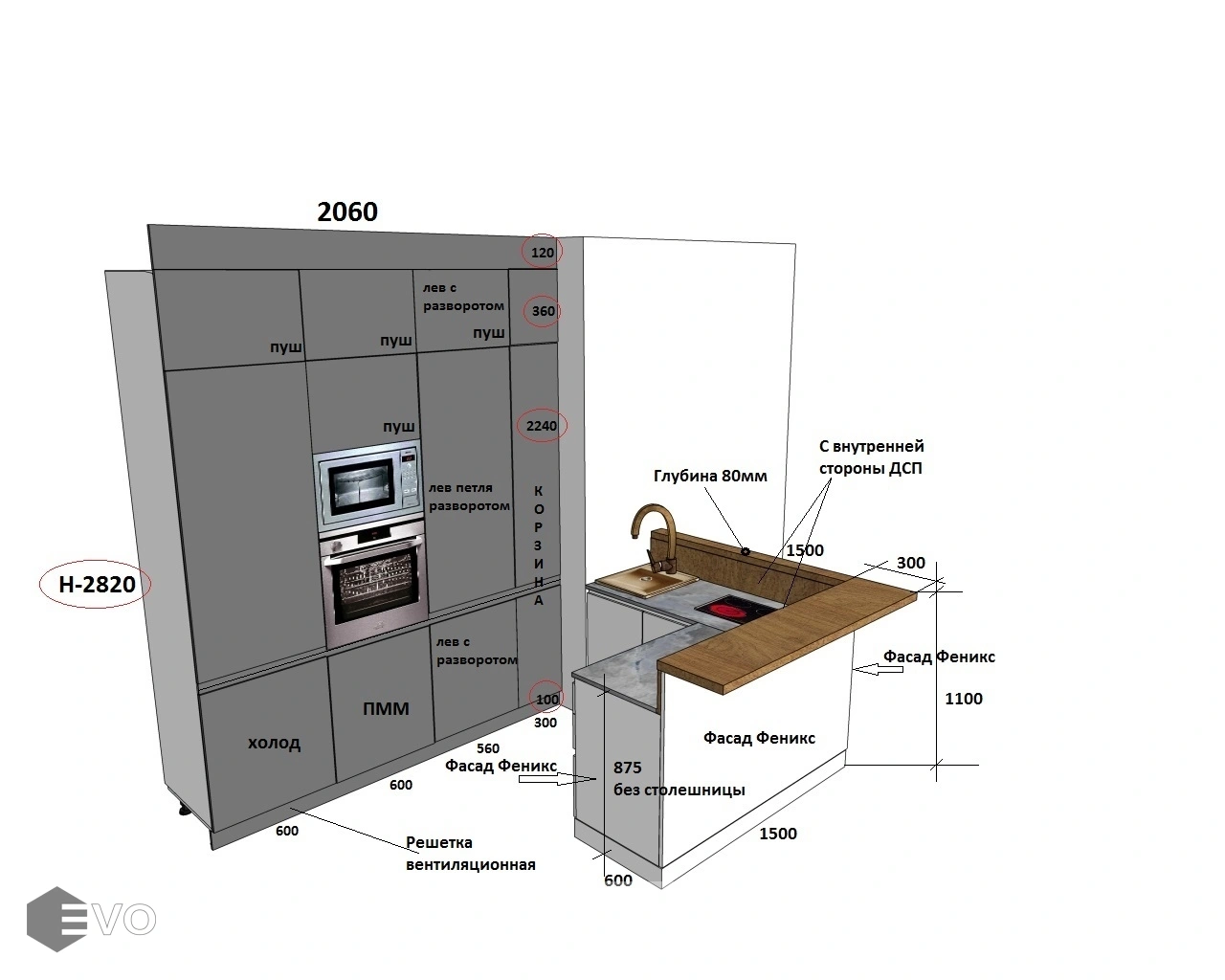 Кухни все изготавливаются по индивидуальному заказу. Мы подготовим дизайн-проект под любое помещение и конфигурацию. В зависимости от выбранных фасадов сможем изготовить нестандартные модули и размеры. Однако есть редкие исключения видов фасадов, по которым невозможны нестандарты, об этом вас предупредит дизайнер при выборе материалов для проекта.