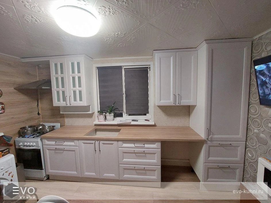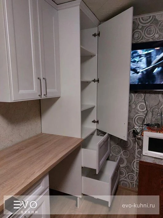 Кухни все изготавливаются по индивидуальному заказу. Мы подготовим дизайн-проект под любое помещение и конфигурацию. В зависимости от выбранных фасадов сможем изготовить нестандартные модули и размеры. Однако есть редкие исключения видов фасадов, по которым невозможны нестандарты, об этом вас предупредит дизайнер при выборе материалов для проекта.