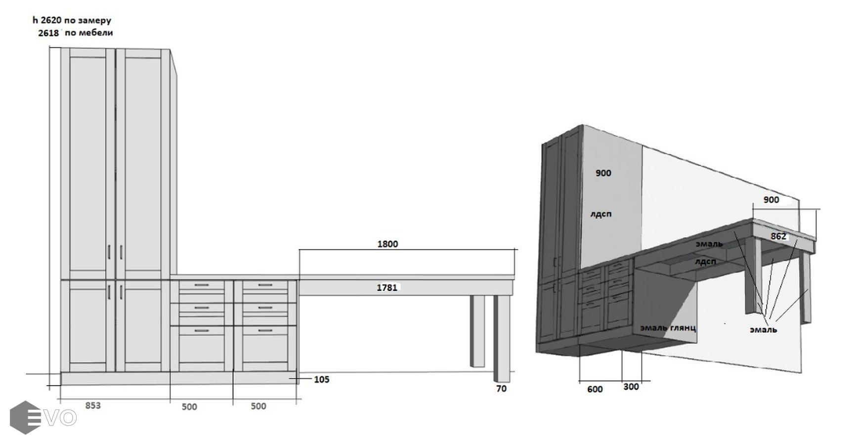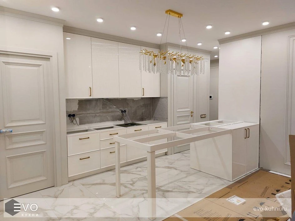 Кухни все изготавливаются по индивидуальному заказу. Мы подготовим дизайн-проект под любое помещение и конфигурацию. В зависимости от выбранных фасадов сможем изготовить нестандартные модули и размеры. Однако есть редкие исключения видов фасадов, по которым невозможны нестандарты, об этом вас предупредит дизайнер при выборе материалов для проекта.