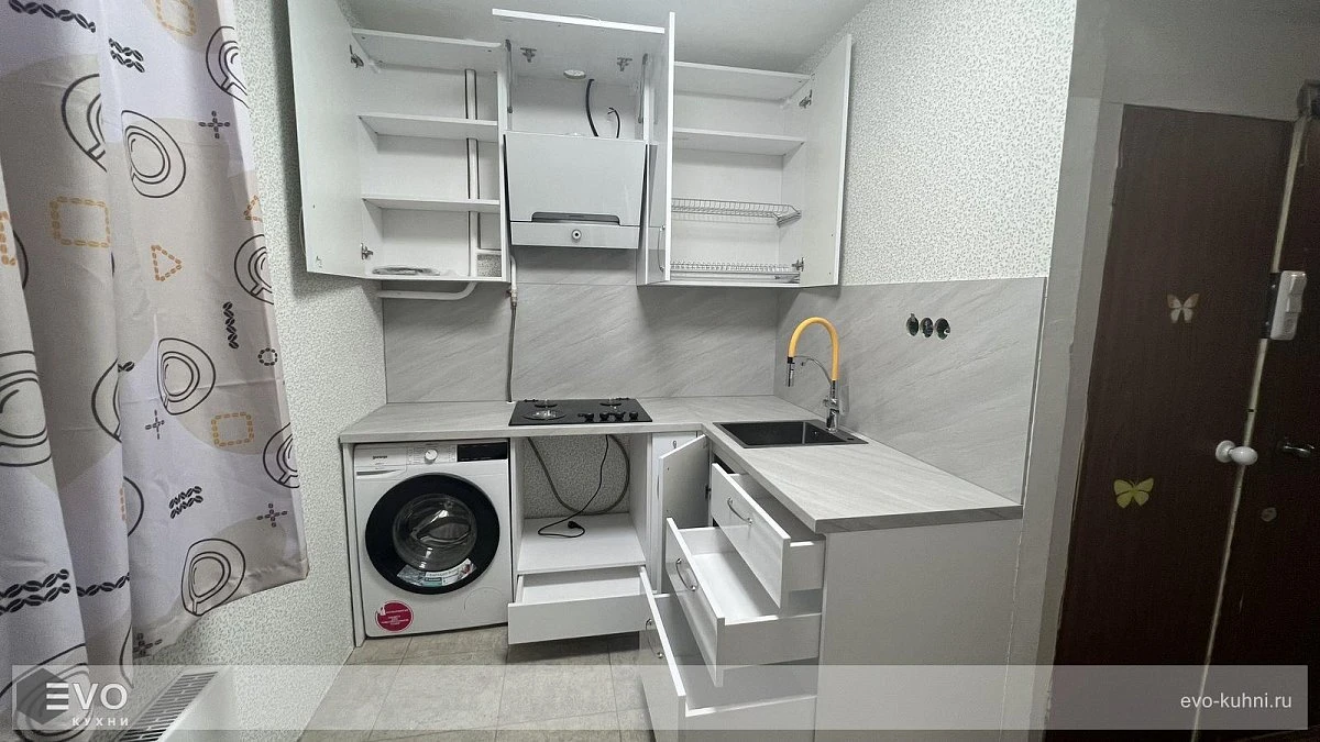 Кухни все изготавливаются по индивидуальному заказу. Мы подготовим дизайн-проект под любое помещение и конфигурацию. В зависимости от выбранных фасадов сможем изготовить нестандартные модули и размеры. Однако есть редкие исключения видов фасадов, по которым невозможны нестандарты, об этом вас предупредит дизайнер при выборе материалов для проекта.