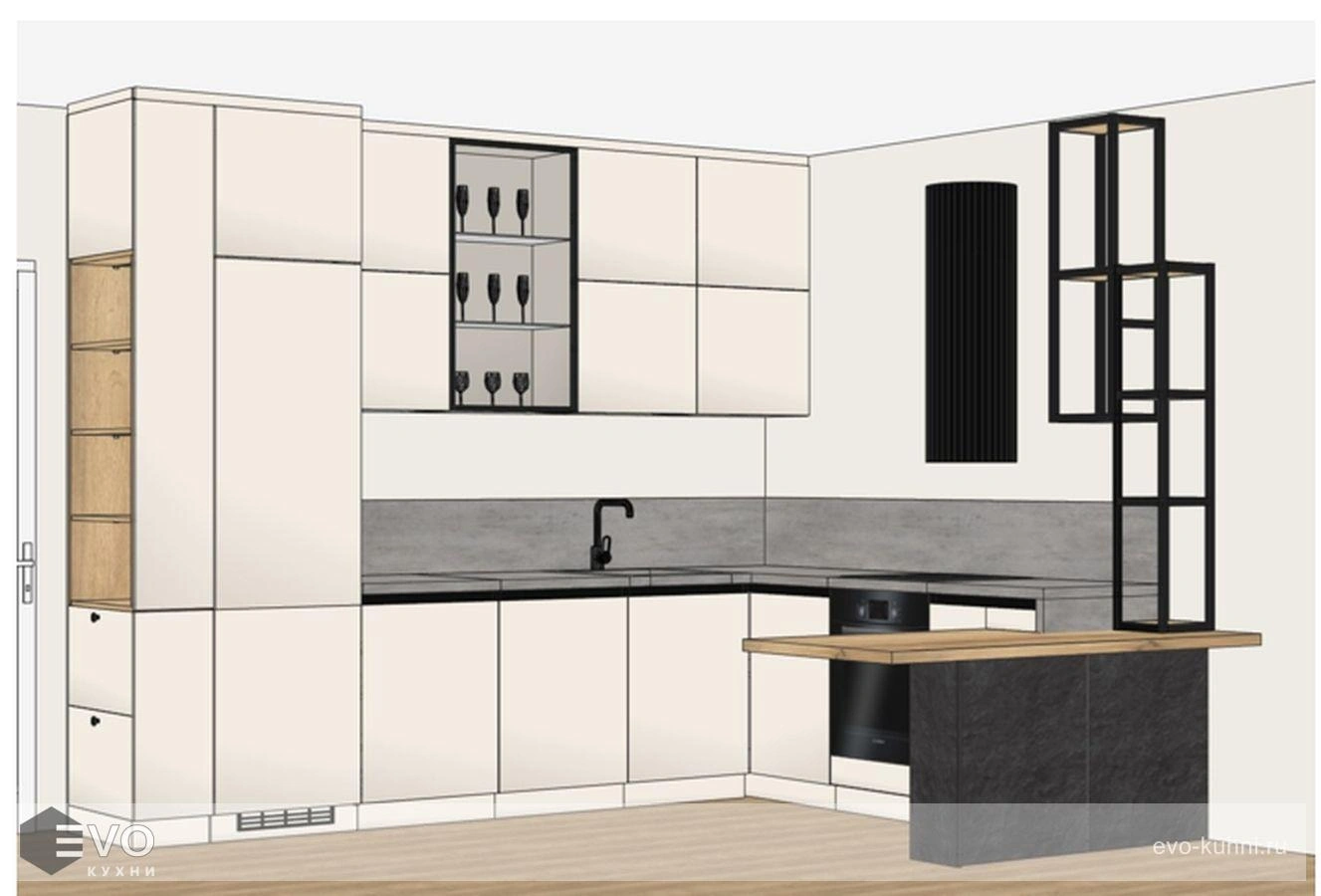 Кухни все изготавливаются по индивидуальному заказу. Мы подготовим дизайн-проект под любое помещение и конфигурацию. В зависимости от выбранных фасадов сможем изготовить нестандартные модули и размеры. Однако есть редкие исключения видов фасадов, по которым невозможны нестандарты, об этом вас предупредит дизайнер при выборе материалов для проекта.