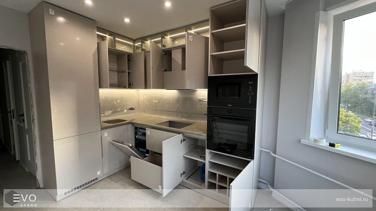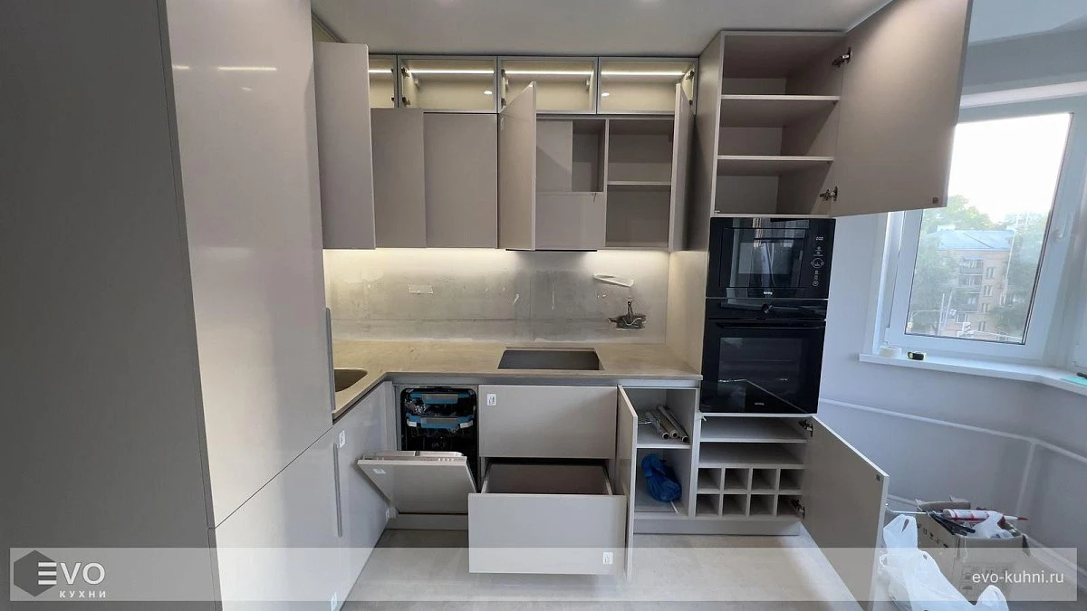 Кухни все изготавливаются по индивидуальному заказу. Мы подготовим дизайн-проект под любое помещение и конфигурацию. В зависимости от выбранных фасадов сможем изготовить нестандартные модули и размеры. Однако есть редкие исключения видов фасадов, по которым невозможны нестандарты, об этом вас предупредит дизайнер при выборе материалов для проекта.