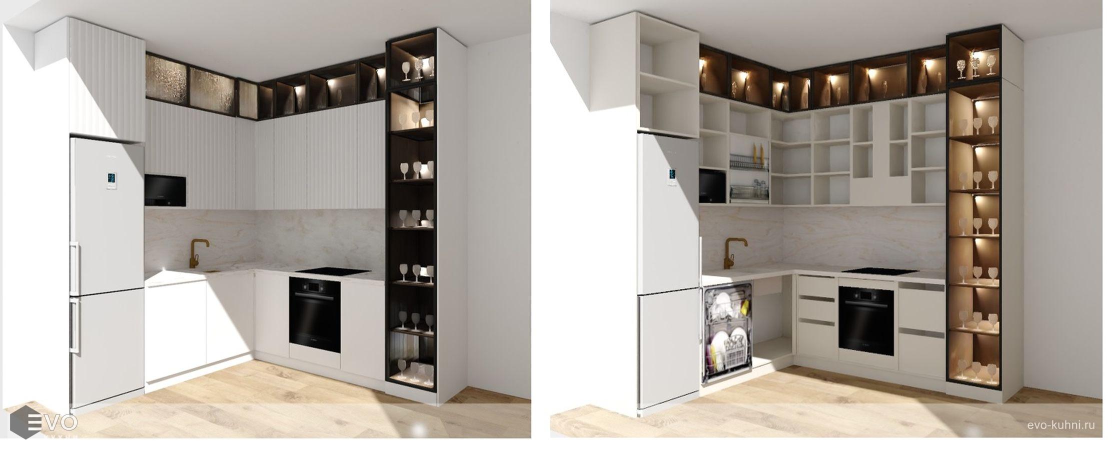 Кухни все изготавливаются по индивидуальному заказу. Мы подготовим дизайн-проект под любое помещение и конфигурацию. В зависимости от выбранных фасадов сможем изготовить нестандартные модули и размеры. Однако есть редкие исключения видов фасадов, по которым невозможны нестандарты, об этом вас предупредит дизайнер при выборе материалов для проекта.