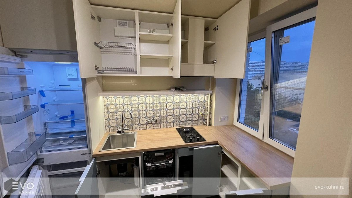 Кухни все изготавливаются по индивидуальному заказу. Мы подготовим дизайн-проект под любое помещение и конфигурацию. В зависимости от выбранных фасадов сможем изготовить нестандартные модули и размеры. Однако есть редкие исключения видов фасадов, по которым невозможны нестандарты, об этом вас предупредит дизайнер при выборе материалов для проекта.