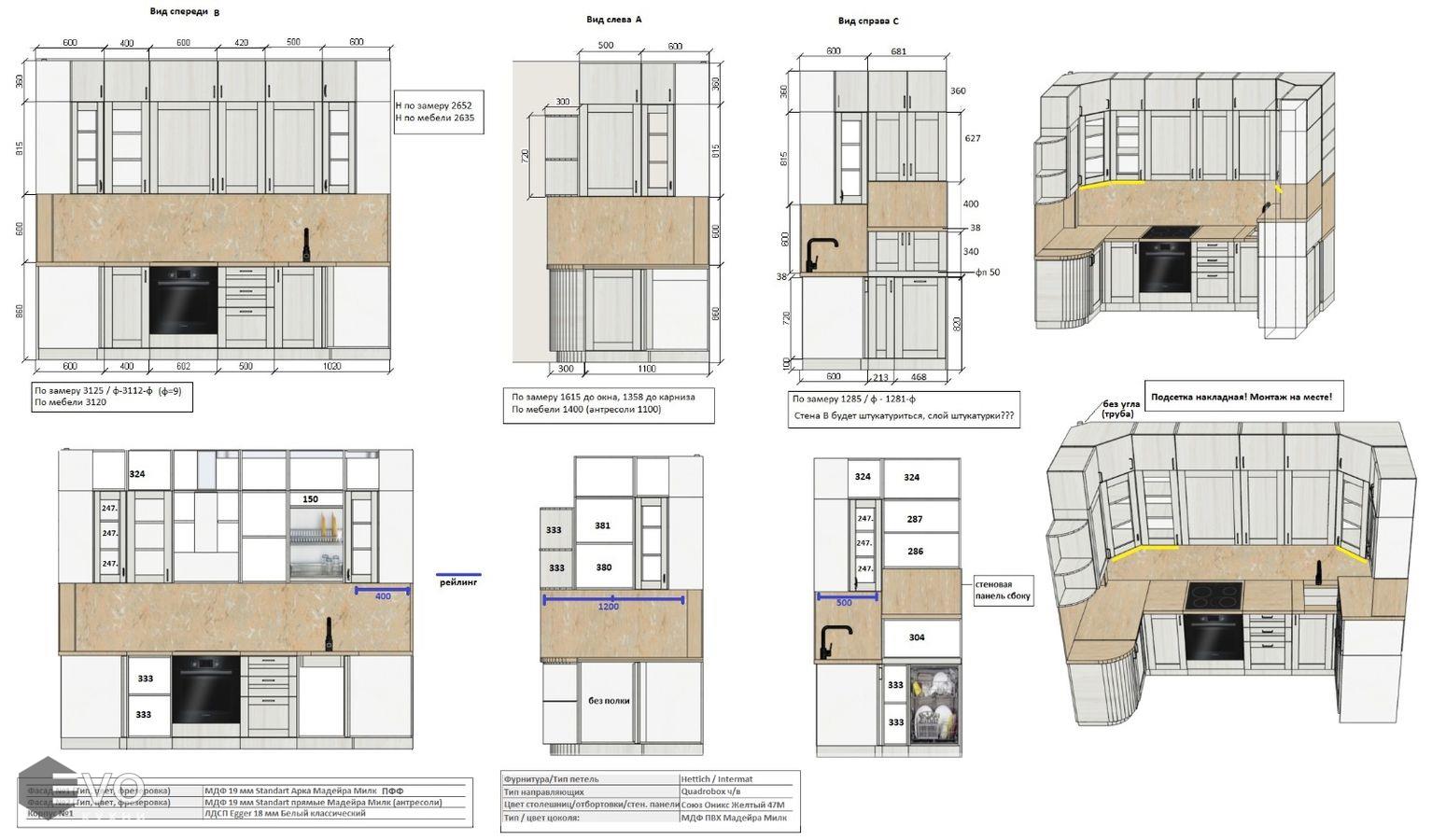 Дизайн-проект, максимально удовлетворяющий вашим пожеланиям, мы делаем бесплатно. Наши менеджеры-дизайнеры помогут вам определиться с моделью вашей будущей кухни, грамотно подберут встраиваемую технику, подберут цветовую гамму самой кухни исходя из стилистики интерьера и пожеланий клиента, составят технически грамотный проект под размеры помещения.