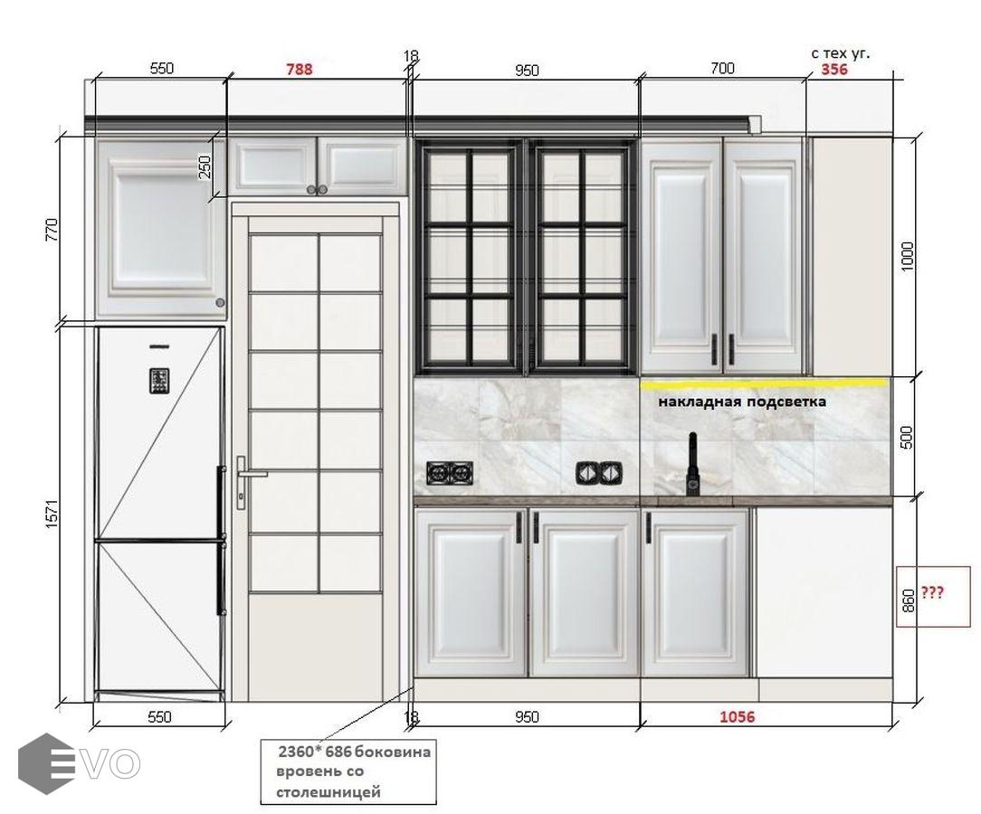 Кухни все изготавливаются по индивидуальному заказу. Мы подготовим дизайн-проект под любое помещение и конфигурацию. В зависимости от выбранных фасадов сможем изготовить нестандартные модули и размеры. Однако есть редкие исключения видов фасадов, по которым невозможны нестандарты, об этом вас предупредит дизайнер при выборе материалов для проекта.