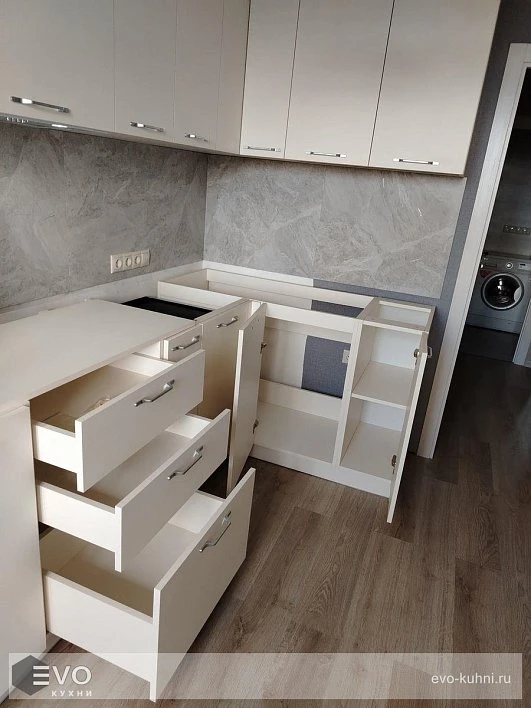 Кухни все изготавливаются по индивидуальному заказу. Мы подготовим дизайн-проект под любое помещение и конфигурацию. В зависимости от выбранных фасадов сможем изготовить нестандартные модули и размеры. Однако есть редкие исключения видов фасадов, по которым невозможны нестандарты, об этом вас предупредит дизайнер при выборе материалов для проекта.