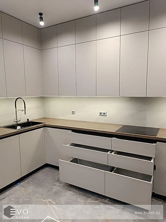 Кухни все изготавливаются по индивидуальному заказу. Мы подготовим дизайн-проект под любое помещение и конфигурацию. В зависимости от выбранных фасадов сможем изготовить нестандартные модули и размеры. Однако есть редкие исключения видов фасадов, по которым невозможны нестандарты, об этом вас предупредит дизайнер при выборе материалов для проекта.